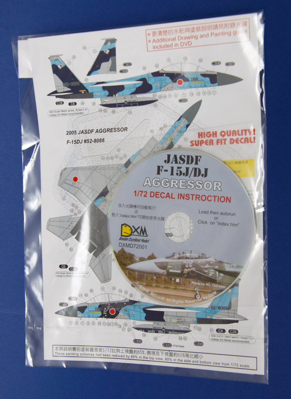 Voilà le genre de planche de décals qui fait plaisir de recevoir dans sa boîte aux lettres : parfaitement emballée, une belle notice en couleur grand format, un DVD, et une planche de décals très bien imprimée !