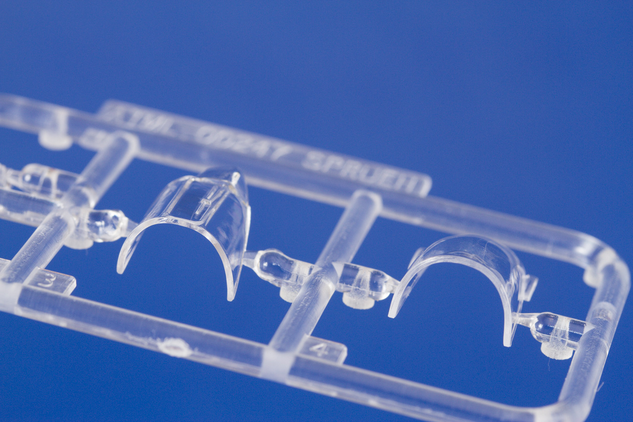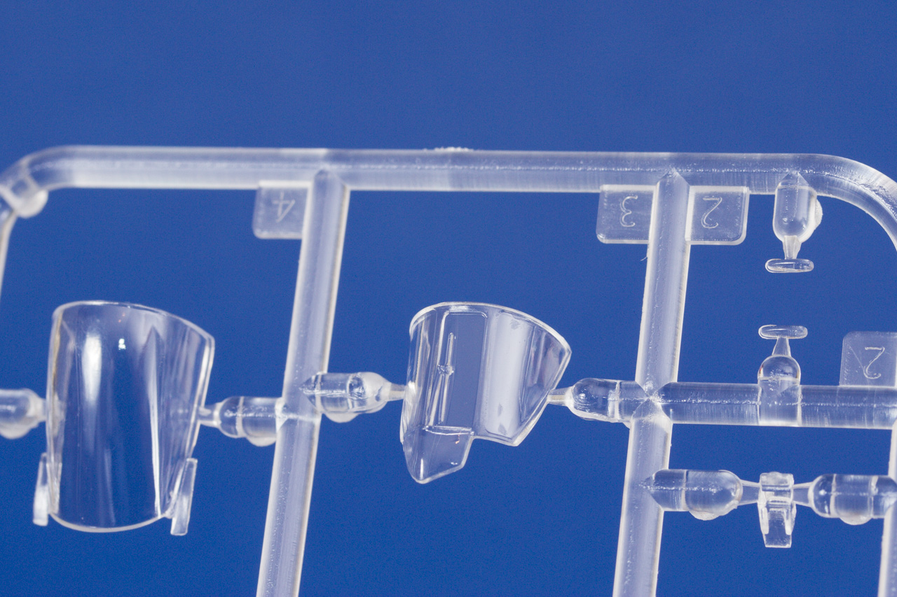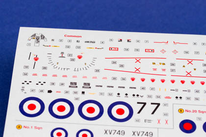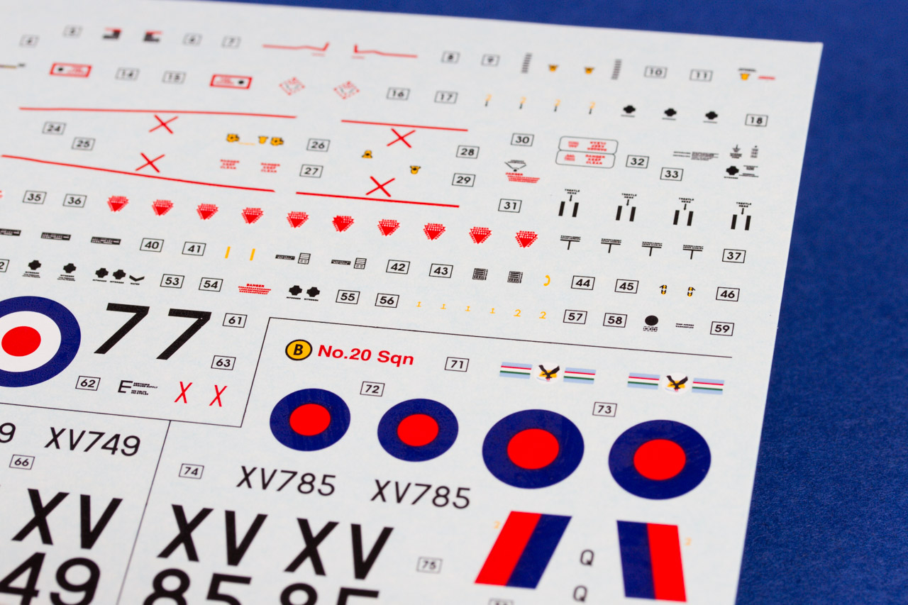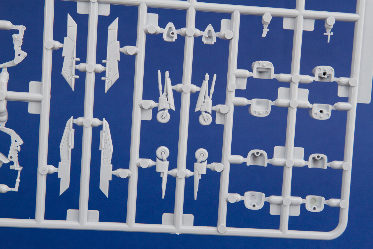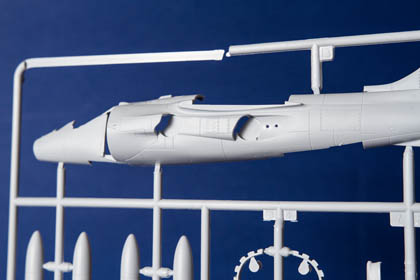 Certes, ce n'est pas encore le standard des maquettes Hasegawa, mais nous avons là des kits fort bien conçus. En ce qui concerne le Harrier GR1, objet de cette analyse, on peut remarquer la veine d'entrée d'air très bien représentée et cloisonnée jusqu'au fan du réacteur. Le logement de l’aérofrein est détaillé ainsi que le logement pourtant très petit du train d’atterrissage avant. L’empennage horizontal est prévu pour être incliné, entrées d'air avec trappes additionnelles baisées différemment, on peut donc sans aucun effort représenter fidèlement l'avion dans la configuration au sol, sur le tarmac. Les pneus sont moulés avec un léger écrasement, les pièces transparentes sont très fines, limpides et sans distorsions.