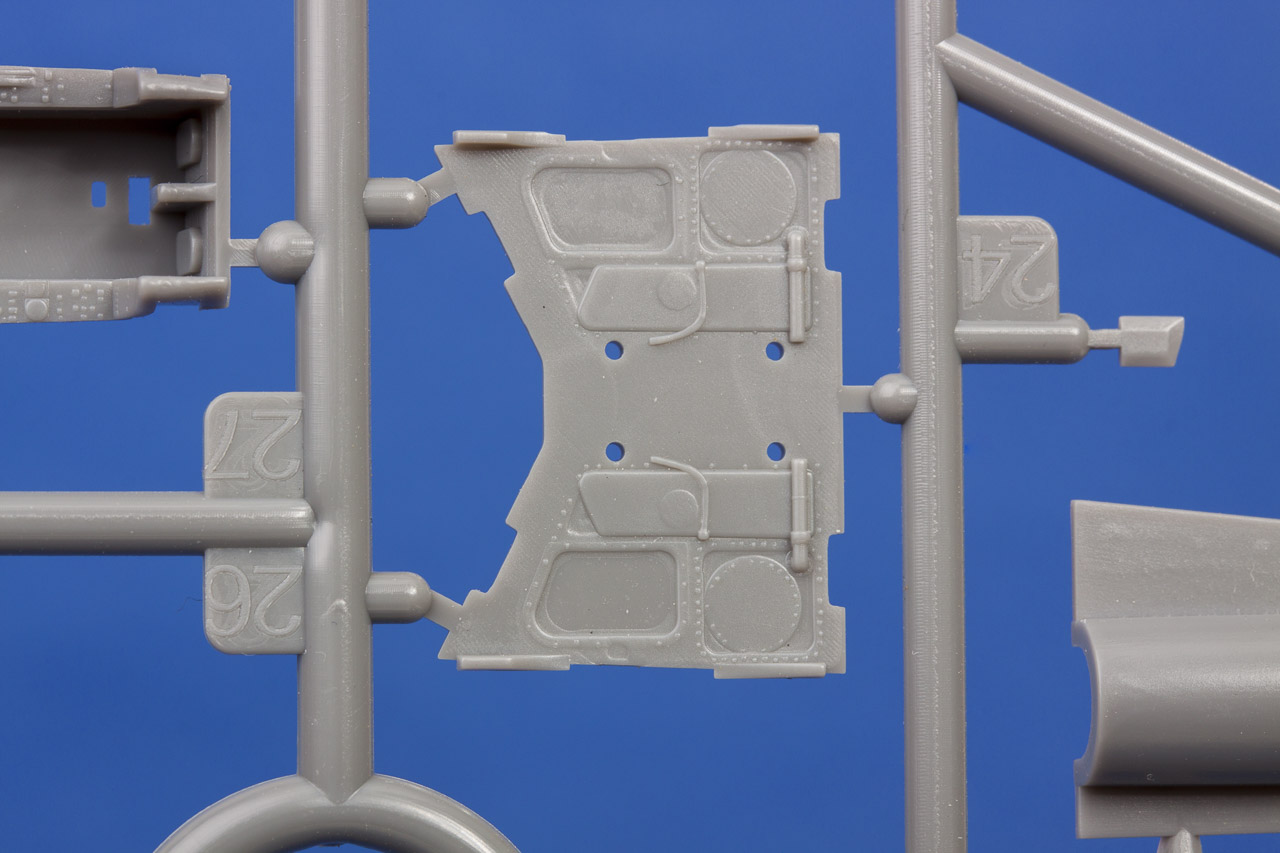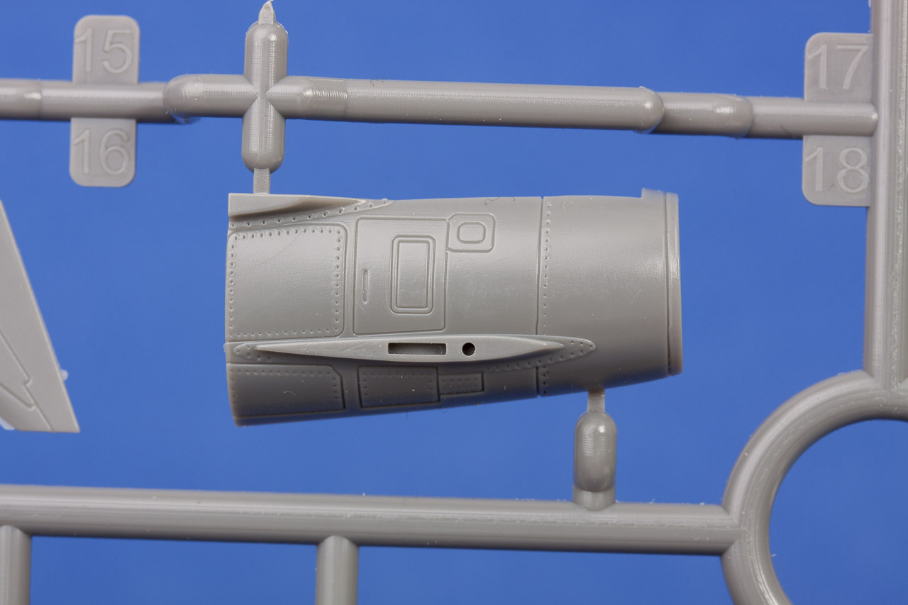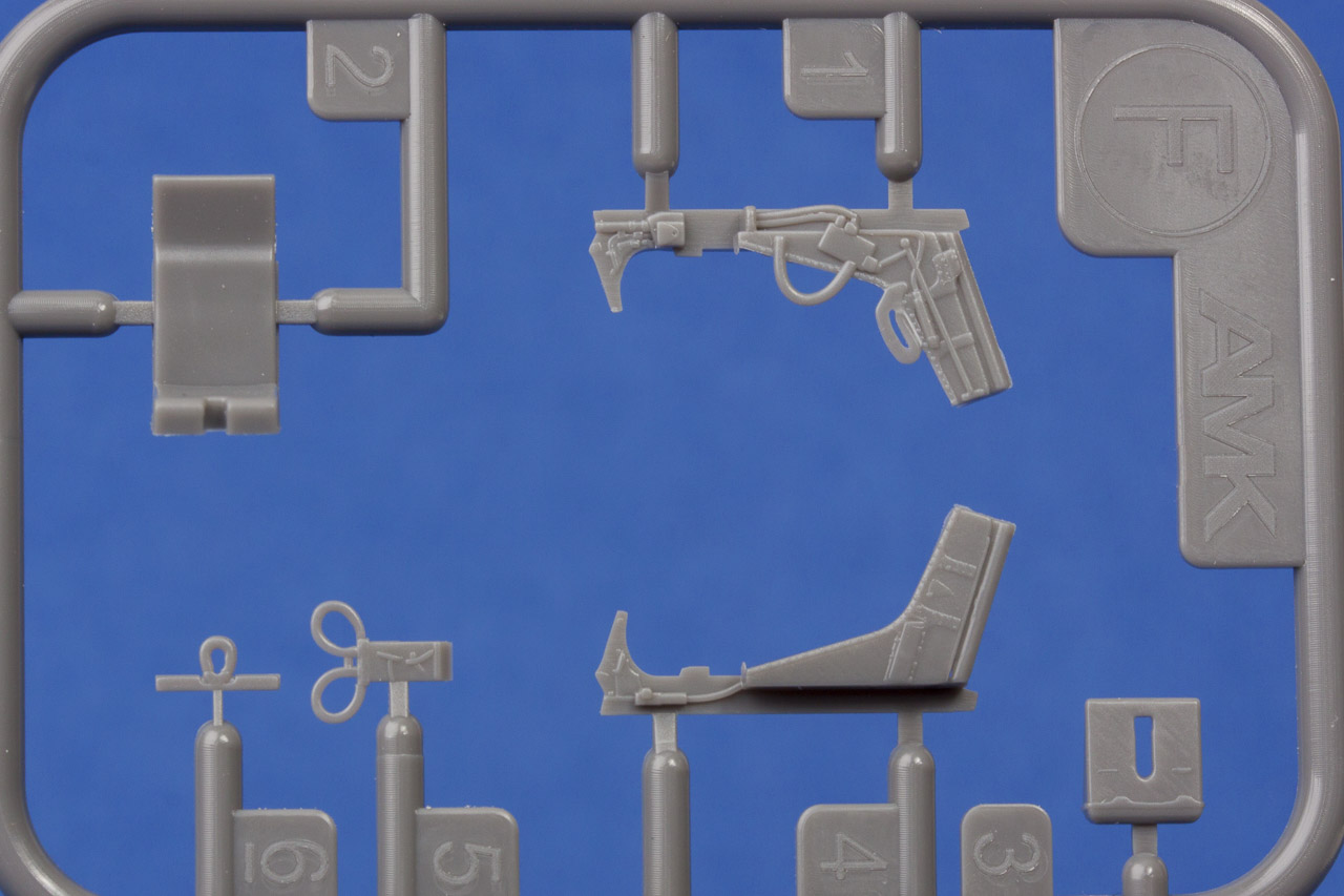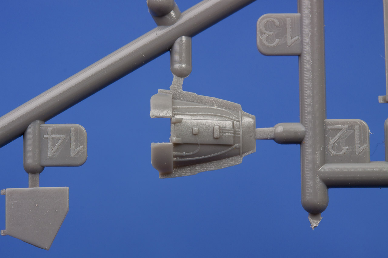 - Le cockpit est joliment reproduit, planche de bord en léger relief, la plaque derrière le siège éjectable comporte des détails en relief.