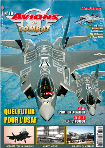Le nouveau numéro d'Avions de Combat pour les mois de mars à mai nous propose un superbe sommaire avec un article complet sur les F-101 Voodoo, l'opération réussie "Excalibur" des Rafale des FAS, le Mig-15 "déserteur", les Mirage IIIO. Deux articles de fond traitent du futur de l'USAF et des nouveaux porte-avions britanniques avec de bonnes photos.