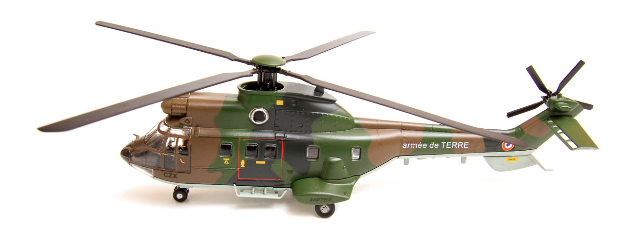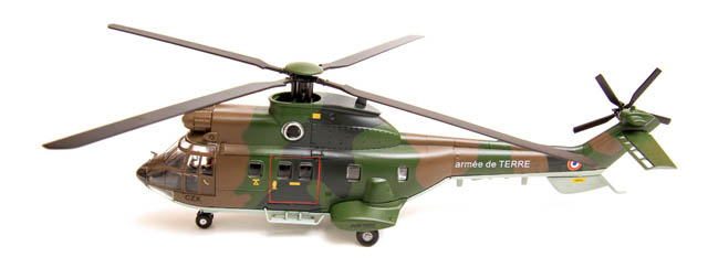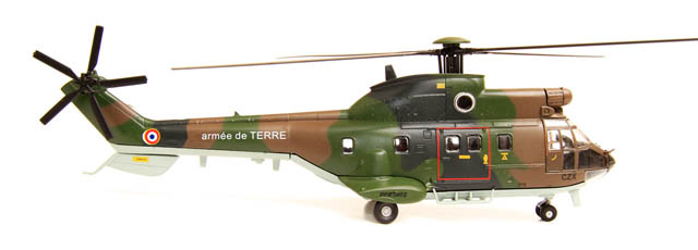 La reproduction de ces modèles en métal à l'echelle le 1/72 est un excellent choix ! Il est juste necessaire de mettre en place les pales et le rotor anti-couple qui sont moulés en plastique. L'opération est simple et ne prend moins de 2 minutes. Pour ce type de reproduction en métal le niveau de détails est assez etonnant, le moulage est relativement fin, les détails tel que les antennes et prise de pression totale sont presentes sur le modèle. J'avoue avoir été agreablement surpris en regardant de plus près dans le cockpit de voir que les manches, palonniers et commande de pas collectif étaient reproduits, et finement moulés. Un pied est fourni et permet de placer l'hélicoptère en hauteur. Page de la collection sur le Site d'Altaya.
