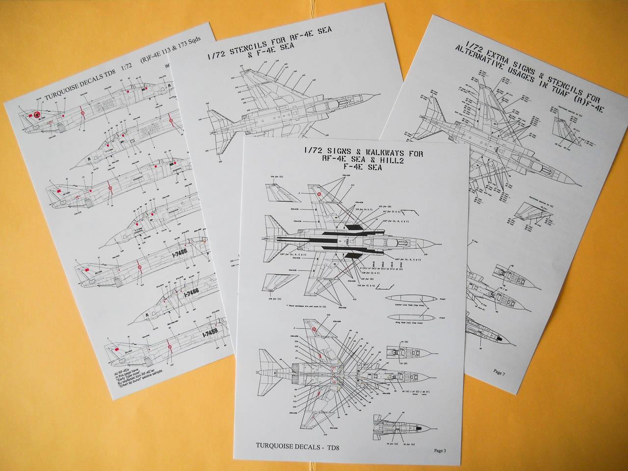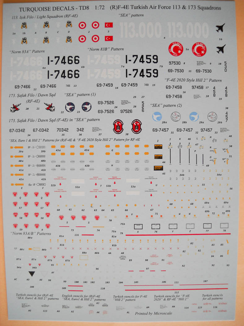 La seconde marque qui nous intéresse ce jour est comme je l’écris plus haut « Turquoise Decals ». Là aussi, coup de cœur garanti !... Les décorations proposées sont certes moins « originales » que celles vu précédemment, mais concernant des livrées classiques, vous avez tout ce qu’il vous faut pour représenter presque n’importe quel Phantom turc, F-4E ou RF-4E , en livrée South East Asia, Hill Grey, mais aussi et surtout Luftwaffe Norm 83 A ou B portées par les RF-4E obtenus de seconde main auprès de l’Allemagne.