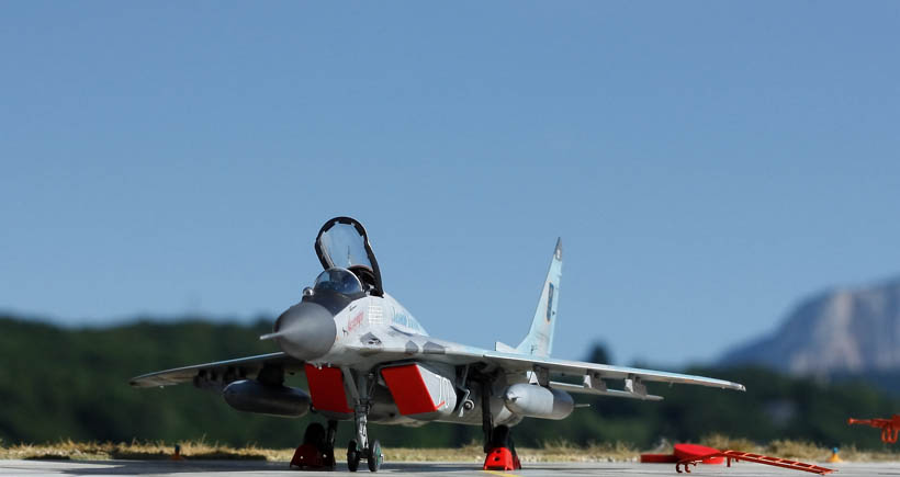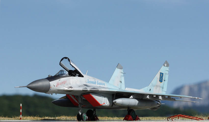 MIG-29 (Izdeliye 9.13) - 2nd AS of 40th Fighter Aviabase of Ukranian Air Defense Forces Vasilkov Airbase, 2007. Maquette Zvezda n°7278 Décalcs Begemot 72-032 Roues Brassin 672090 Set Eduard 73555 Tuyères Amigo Models AMG 72011