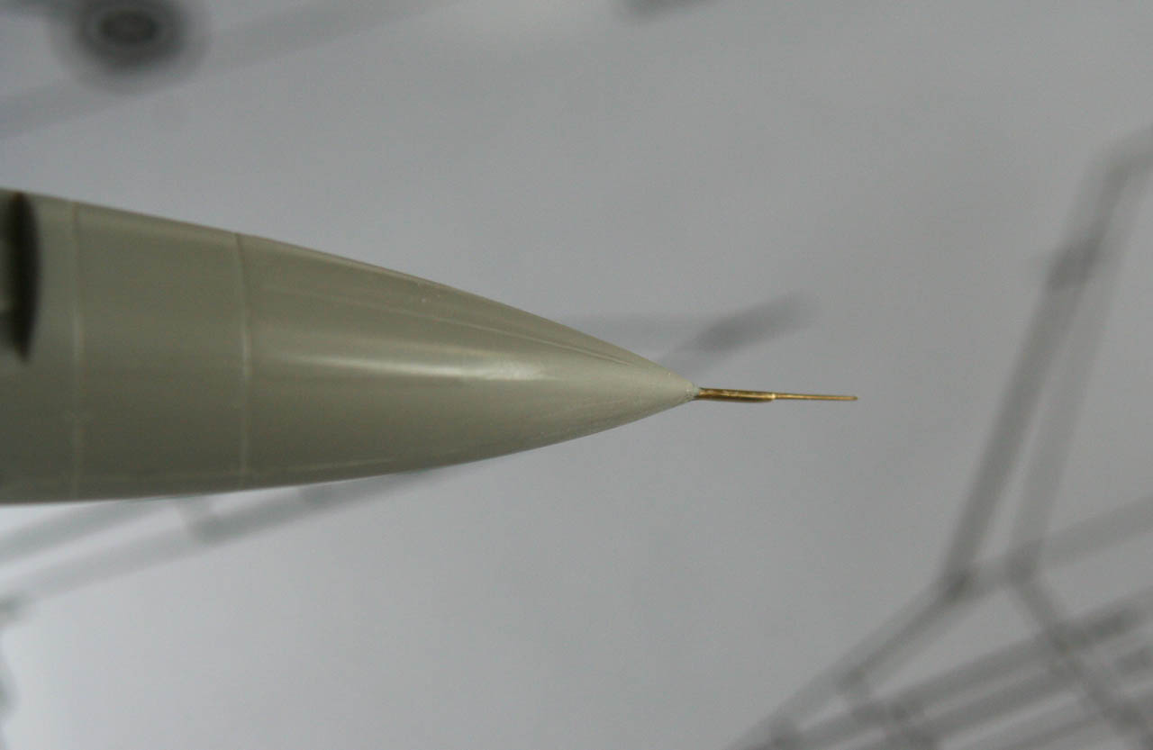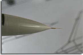 Sur la photo de droite, le tube pitot, placé sur la maquette, collé à la cyano puis adapté au Mr Surfacer