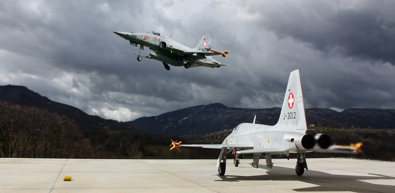 J'ai choisi de représenter un F-5E Tiger II livré à la Suisse à partir de 1976 (programme « Peace Alps »).