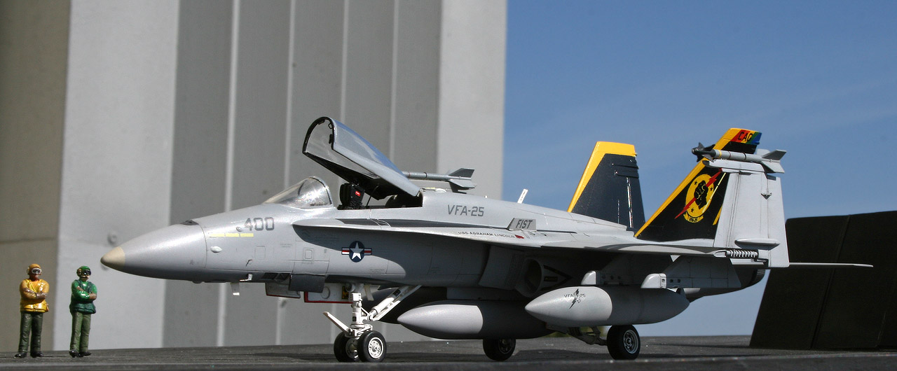 La maquette du F/A-18 de Hasegawa n'est pas une maquette facile, elle demande beaucoup de travail. J'ai choisi de représenter un F/A-18C de la VFA-113 ailes repliées. Voici donc comment j'ai procédé :