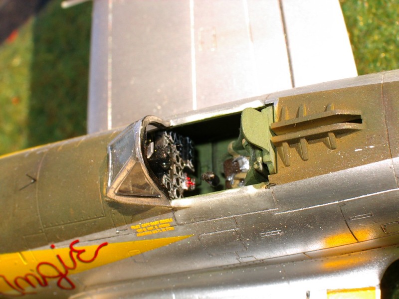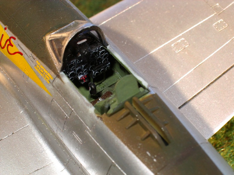 La maquette Revell du P-47 est une excellente maquette, la gravure est superbe, les détails nombreux et l'assemblage extrêmement facile de plus le prix est vraiment attractif. J'ai simplement ajouté un harnais sur le siège et j'ai également ajouté les fils d'allumage sur les cylindres du moteur. L'intérieur est peint avec la teinte interior green Gunze. J'ai utilisé uniquement les teintes Gunze pour réaliser cette décoration à l'exception de l'aluminium qui est la teinte 11 Silver de Humbrol, il y avait longtemps que je n'avais pas utilisé cette teinte utilisant des produits plus à la mode comme les : Metal Cote, Metalizer et en fait après avoir comparé tous mes modèles peint avec les différentes peintures je trouve que la teinte n°11 Humbrol à un meilleur rendu que les autres, mais c'est un avis tout à fait personnel. De plus j'ai pu vieillir la maquette à l'aide de jus et de pastel et la teinte à bien resistée ainsi qu'au scotch de masquage Tamiya. Toutes les autres teintes sont réalisées avec la peinture Gunze appliquée à l'aérographe. Les décals proviennent de la planche Aeromaster n°72-181