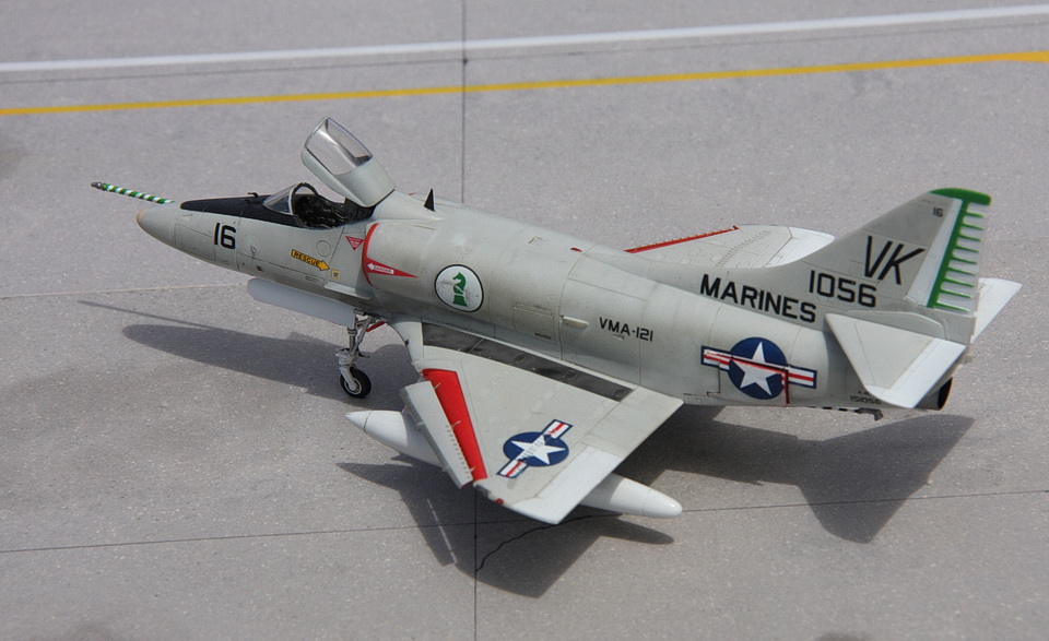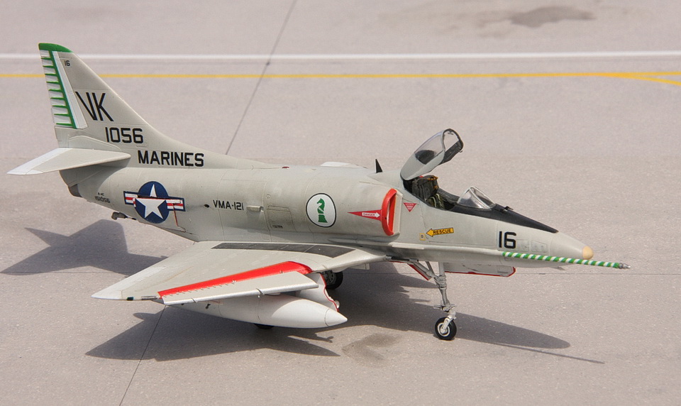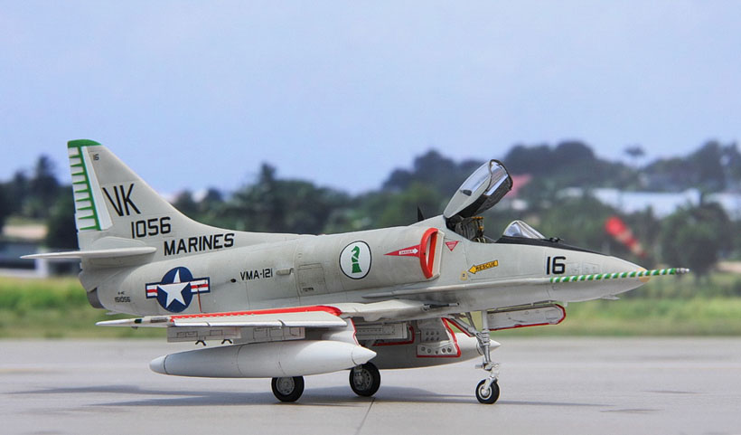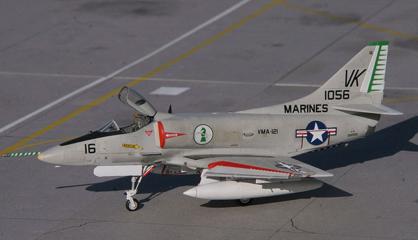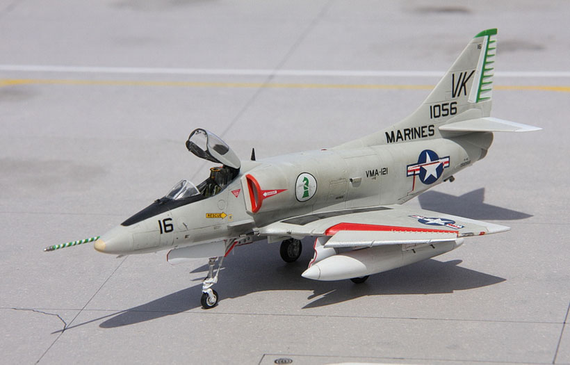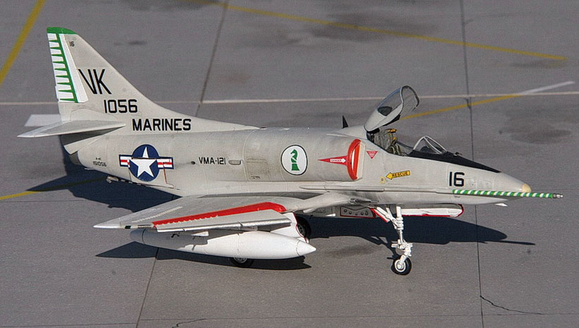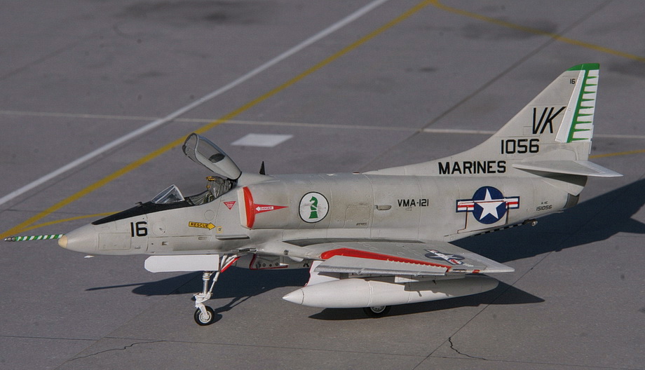 Quelques détails ici et là (pylônes, trappes, antennes, sondes ...) sont ajoutés avant de pouvoir placer la maquette sur les étagères. D’autres Skyhawk suivront…