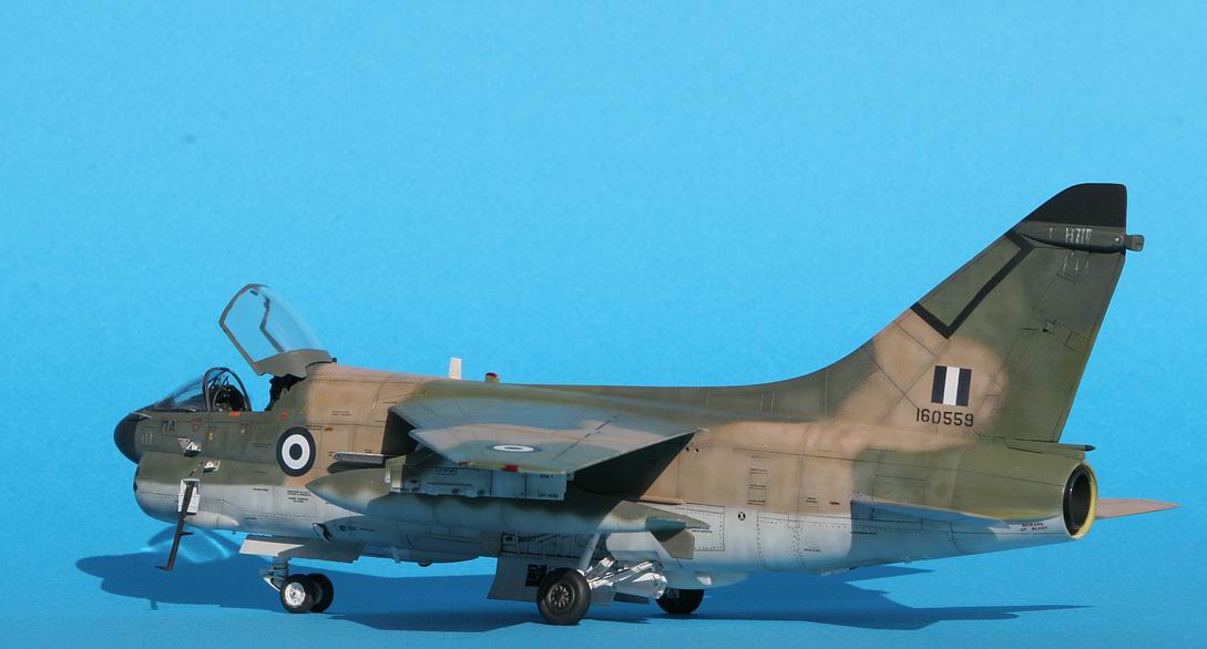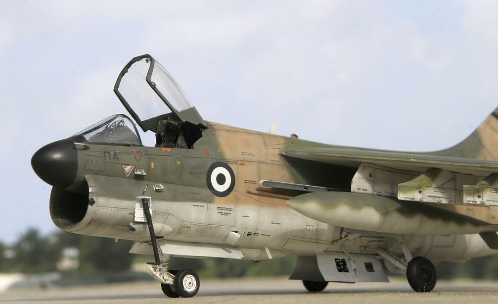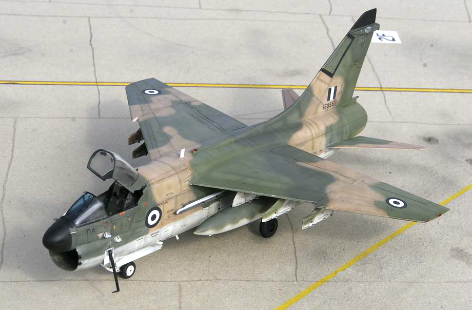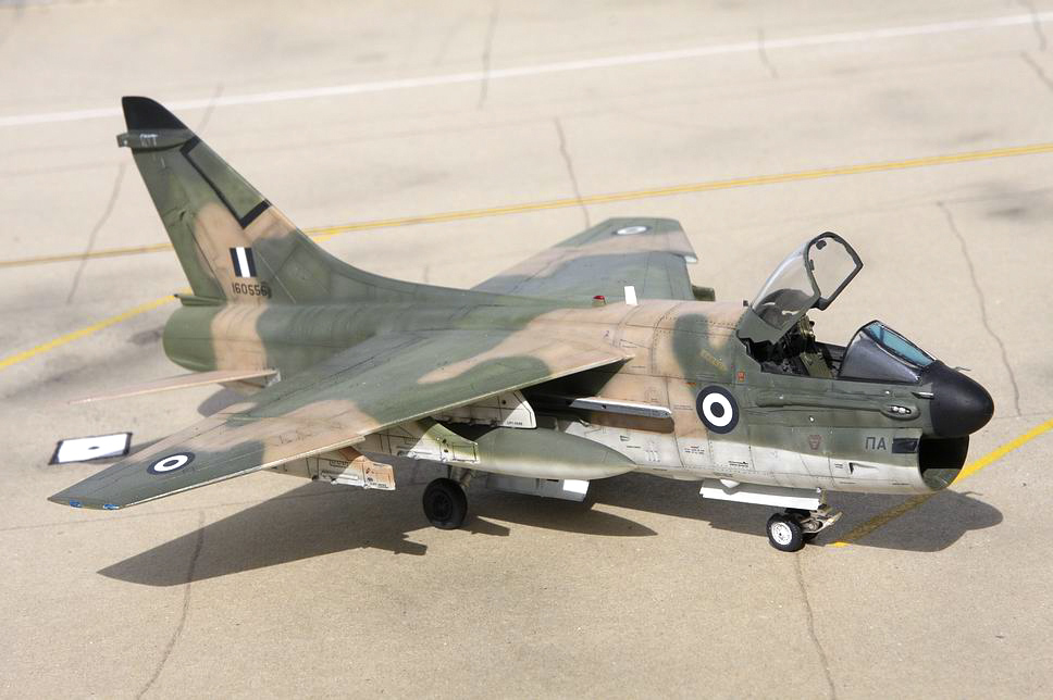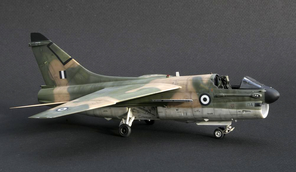 J'avais initialement prévu de m'attaquer à un A-7E aux couleurs low viz de l'US NAVY mais le hasard des planches de décalcomanies disponibles et des échanges avec des maquettistes grecs m'a poussé à monter un Corsair II grec. Un des intérêts de ce projet est le camouflage de type "Vietnam" que j’aborde pour la première fois alors que plusieurs de mes projets à venir sont porteurs de ce type de schéma.