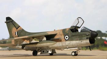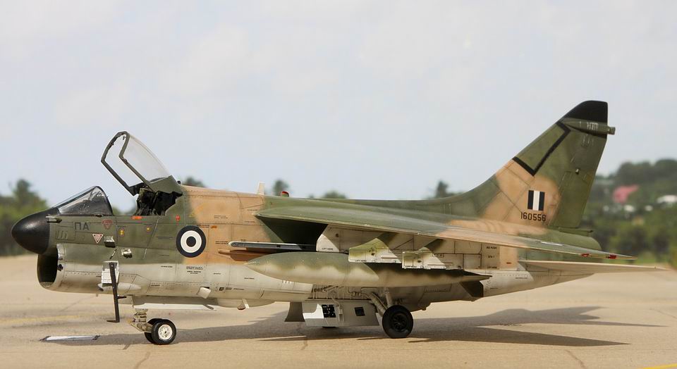 Après étude de la documentation un avion a été choisi en tenant compte des photographies disponibles (ce qui me permet de vérifier son état général, les détails spécifiques et de sa disponibilité en tant que A-7E dans l’arsenal grec) et de la disponibilité des lettrages sur la planche Icarus. Mon avion sera donc le 160556. |