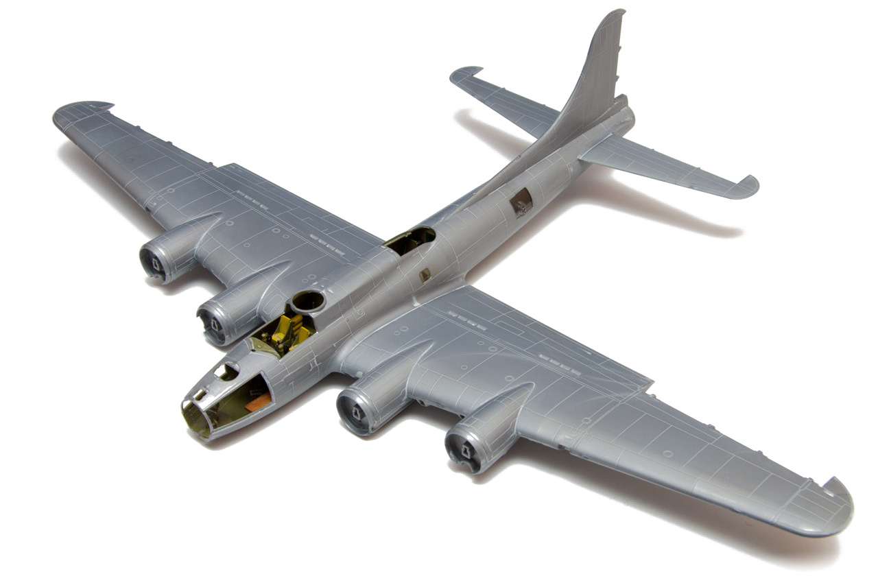 Cela faisait très longtemps que je voulais ajouter la Forteresse volante à ma collection. C'est donc avec une certaine impatience que j'attendais la sortie du kit annoncé par Revell. Fin novembre 2010 la maquette était enfin disponible. A l'ouverture du kit, les grappes m'ont quelque peu déçu. La gravure étant vraiment trop appuyée à mon goût. La dureté du plastique beaucoup trop tendre me donna une mauvaise impression. Par contre, la qualité générale des assemblages et les nombreux détails compensent largement les désagréments.