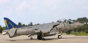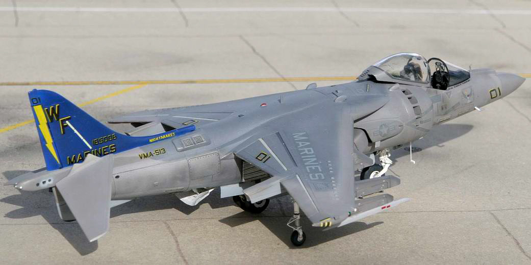 Il s’agit en effet d’une base très lisse, tout au plus constituant une base de travail correcte. La maquette est trop simplement réalisée (la fermeture des multiples trappes et de l’aérofrein, le cockpit peu détaillé et les tuyères de réacteur obstruées en témoignent). Surtout les versions sont mal déclinées. A partir de la version de base de l'USMC, le AV-8B, première version disponible chez Hasegawa, la marque s'est contentée de proposer des éléments structurels tels que le nez des avions pour différencier les versions, alors que dans la réalité les versions ultérieures de l’USMC et les versions de la RAF regorgent de différences de détails, non traitées ou traitées avec légèreté.
