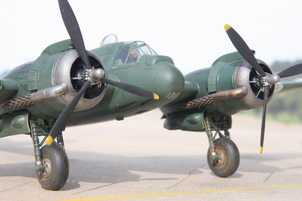 L’application de quelques pigments sur les zones de marches et sur les roues parachève ce montage simple, d’une très bonne maquette, assez peu vue, d’un des avions discrets mais important du deuxième conflit mondial. |