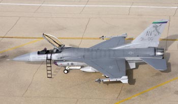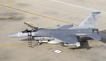 L'avion est l'avion du "Boss" du 31st Fighter Wing de l'USAFE, basé à Aviano. Le 31st FW est constitué du 510th FS (Buzzards – couleur d'unité violet) et du 555th FS (Triple Nickel – couleur vert). Des photographies dont je dispose montrent l'avion – qui appartient au 510th FS -avec une bâche vert et violet (comme la bande de dérive).