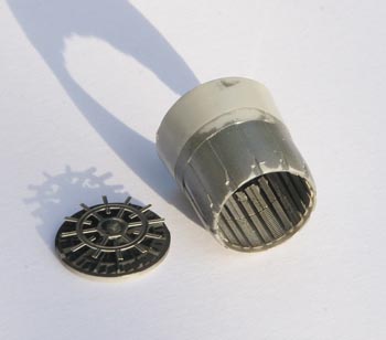 Du fait de la faible profondeur de l'entrée d'air, j'ai décidé de la couvrir d'une bâche. La bâche a été reproduite en découpant en forme un morceau de bande de masquage Tamiya. Cette bande est collée en place puis est recouverte d'une couche épaisse de colle blanche.