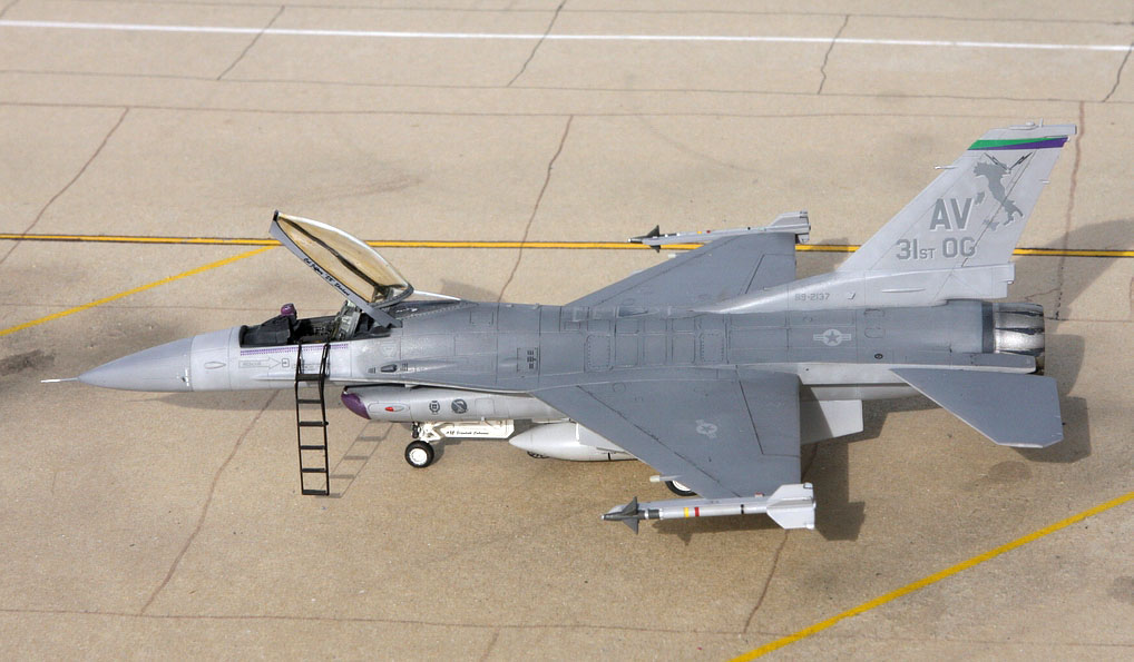 - le F-16C Revell devenu rare. Il s'agit d'une belle base mais ses inconvénients principaux sont la rareté de la maquette et l'absence des trappes de train principal bombées couvrant les grosses roues de la version.