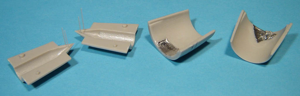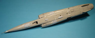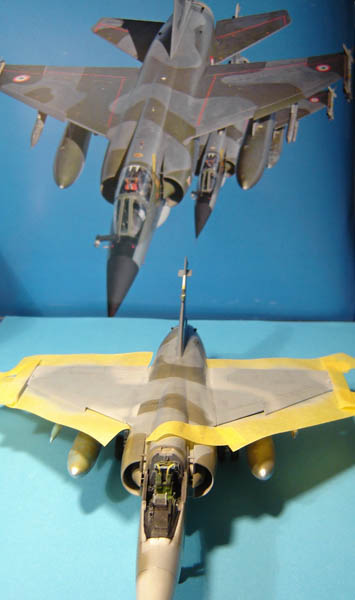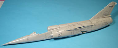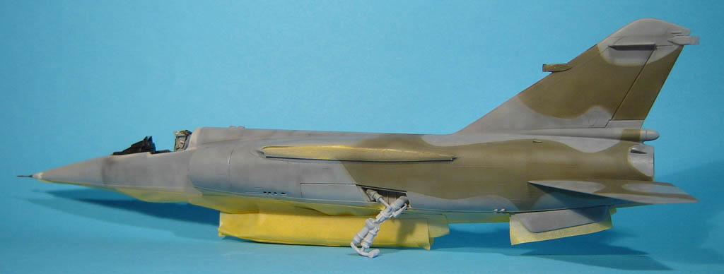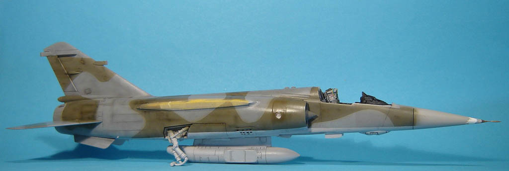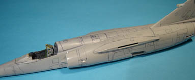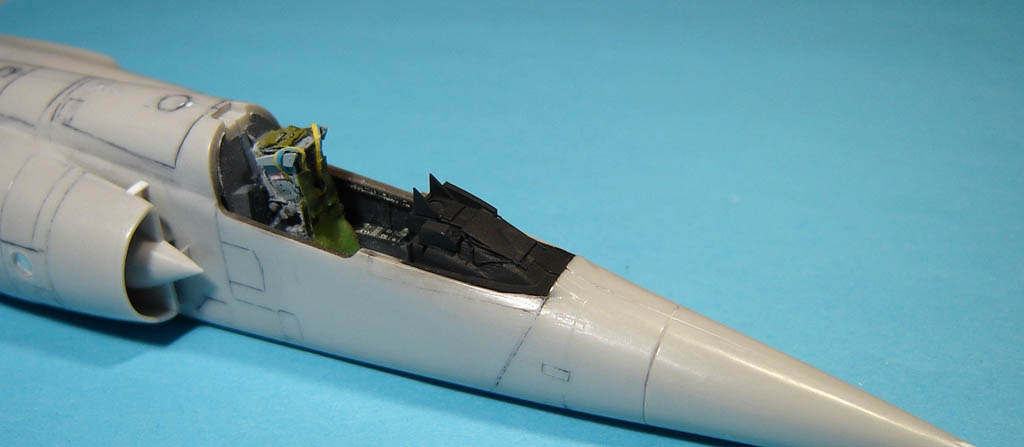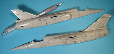 Les aérofreins Hasegawa sont substitués par ceux de la maquette Heller car le nombre de trous est exact. Les prises d'air / écopes près de la tuyère sont refaites car celles d'origine sont beaucoup trop larges.