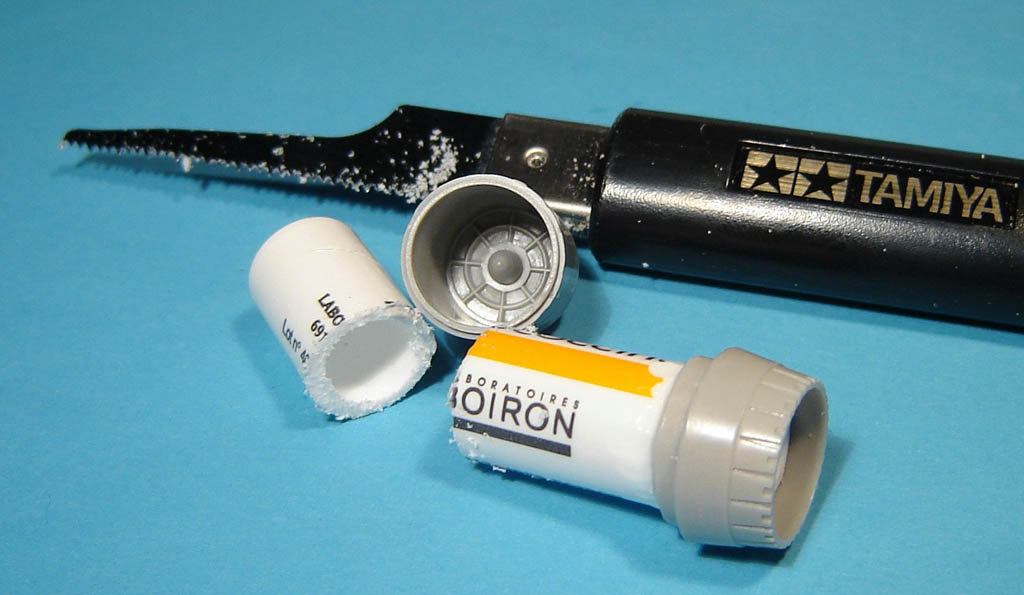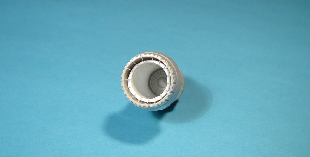 Tout est à refaire vu le peu de profondeur du canal de postcombustion et l'absence de la couronne des volets intérieurs. J'ai scié la pièce d'origine et intégré un petit tube de comprimés pour figurer un canal de post combustion.