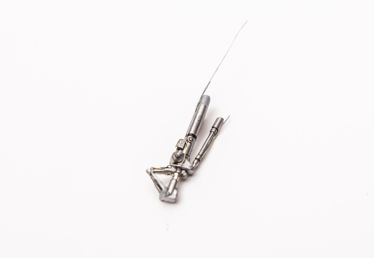 Les trains atterrissage ont été détaillés à l'aide de plastique étiré et de brin de fil métallique très fin. |