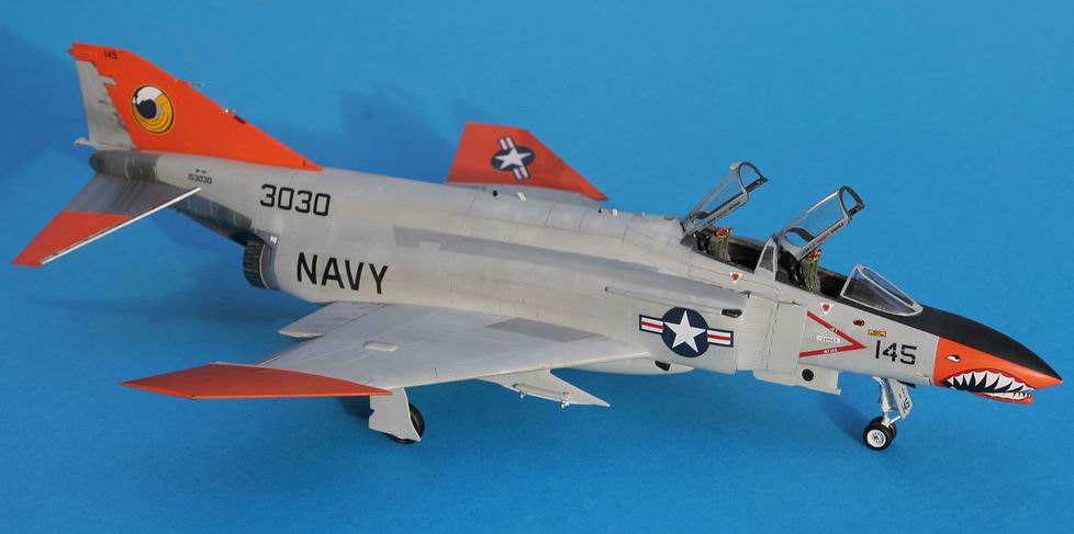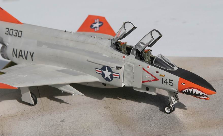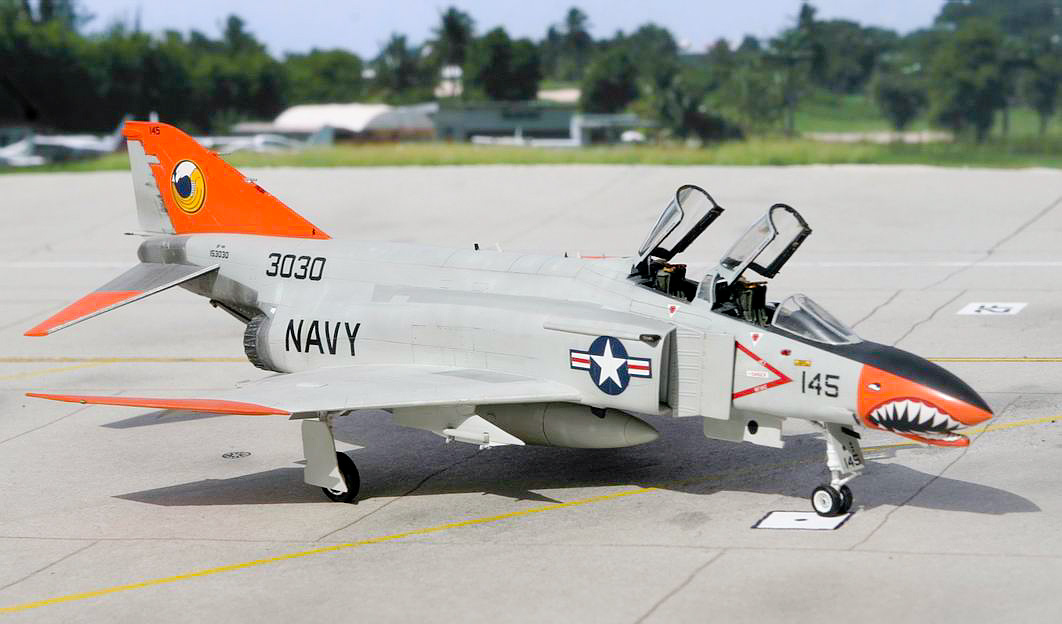 Par ailleurs, en effectuant mes recherches, je me suis rendu compte qu’un des avions de la planche avait une histoire extrêmement riche. Il s’agit d’un QF-4N qui avait volé très tardivement sous les couleurs de l'US NAVY. Ce Phantom, BuAer 153030 est le dernier Phantom II à avoir volé sous les couleurs de l'US NAVY en août 2004. Il est maintenant exposé au musée basé sur le USS Midway à San Diego et porte les couleurs de deux Phantom basés sur ce même porte-avions pendant la guerre du Vietnam auteurs de la première victoire aérienne au Vietnam (moitié bâbord - F-4B NE/101 de la VF-21, victoire du 17 juin 1965) et de la dernière victoire aérienne au Vietnam (moitié tribord – F-4 NF/102 de la VF-161, victoire du 12 juillet 1973.)