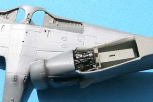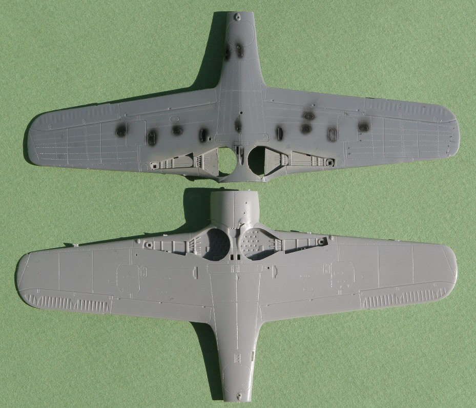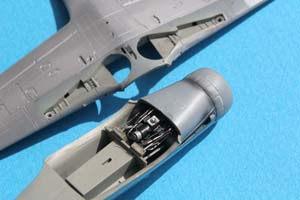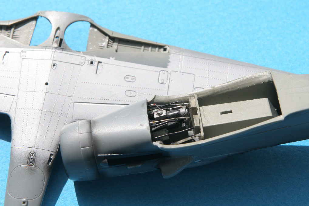 Outre l'intérêt du camouflage et de la représentation que j'escomptais en faire du fait de la disponibilité de documents, je souhaitais également améliorer la maquette en reproduisant une caractéristique des Dora assez peu représentée au 1/72e, à savoir le fait que la partie arrière du moteur est visible à travers les puits de trains. Cette caractéristique n'est prise en compte ni par Hasegawa, ni par Tamiya, malgré la bonne qualité de leurs représentations au 1/72e de l'avion. Par ailleurs je souhaitais également m'exercer à la représentation des rivets, petite mode maquettiste que je commençais à observer au 1/48e.