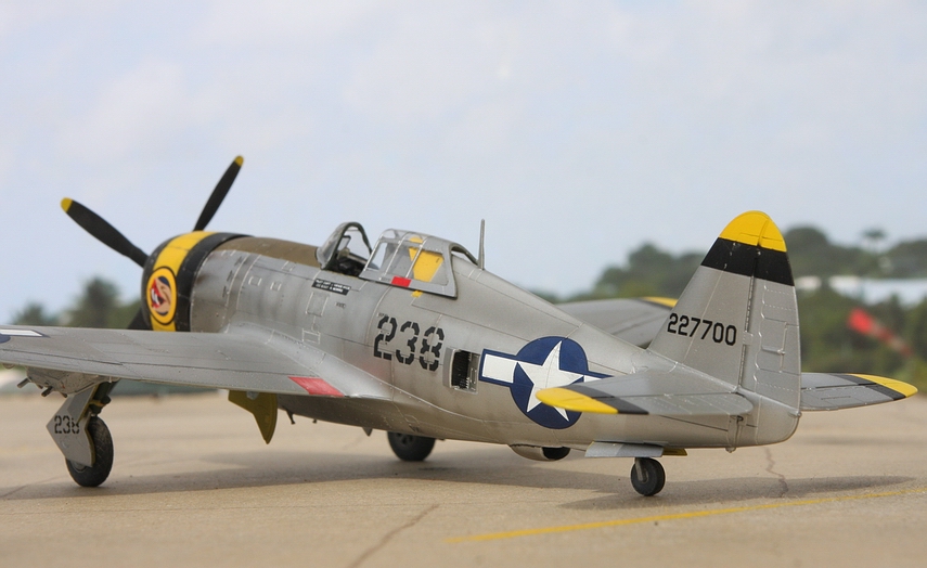 L'avion a certainement été lourdement retouché sur le terrain. Pour ce qui a guidé mon choix, outre le fait que l'avion était documenté et des décalques disponibles (planche Eagle Cal 72-60), c'est le grand nombre de couleurs utilisées et la relative complexité du camouflage qui ont prédominé.