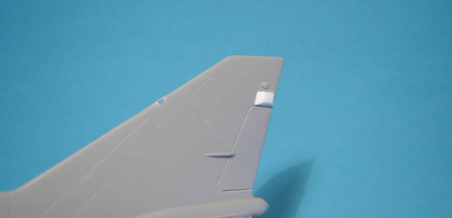 Les carénages RWR spécifiques aux F-21A (juste au dessus de la dérive mobile) sont mis en forme dans des morceaux de plastique Evergreen, facile à découper et à coller à la colle à maquette.