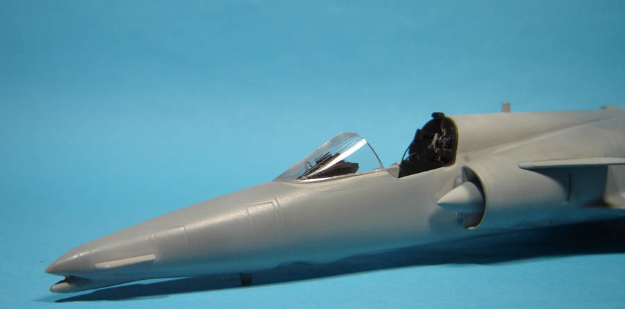 latérales, l'avionique à l'arrière du siège, le matériel sous le pare-brise. J'ai utilisé les decalc "toutes simples" d'Hasegawa pour le tableau de bord et les consoles.