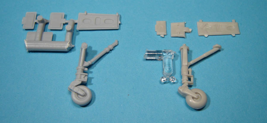 J'ai également préféré utiliser les jambes des trains d'atterrissage d'Hasegawa, un peu plus fines ainsi que les portes des trappes des puits de trains.