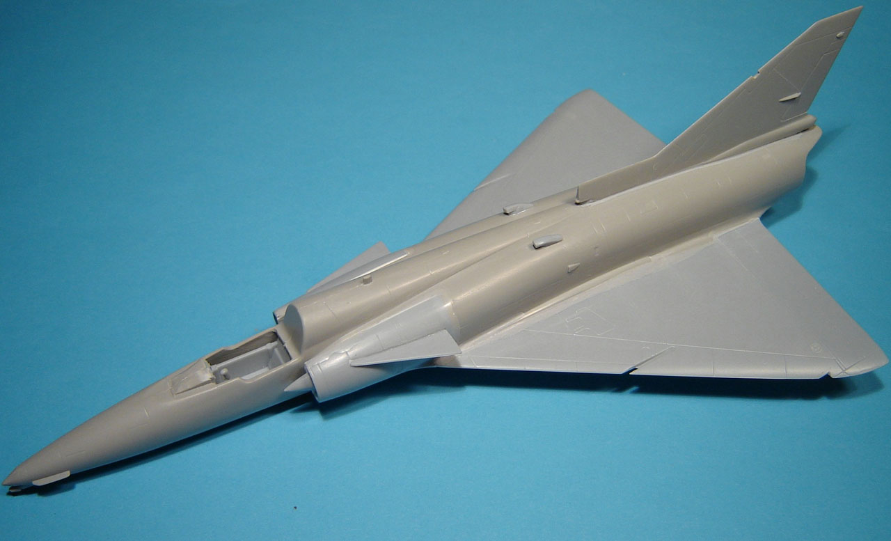 Mauvaise surprise dès l'ouverture de la boîte : le fuselage souffre vraiment de gros défauts de moulage, notamment au niveau de la base de la dérive, le logement du parachute de freinage semble "cabossé", certaines lignes de structure en creux ont carrément disparu sur certaines zones d'un demi fuselage ...