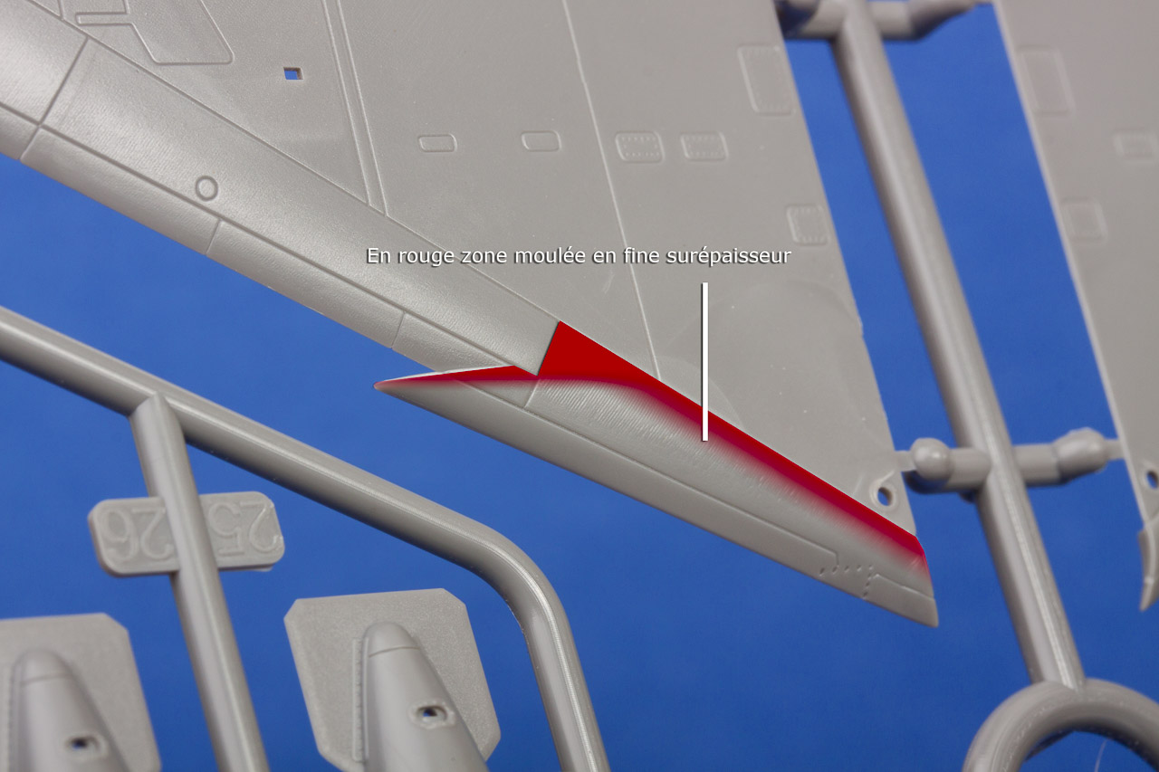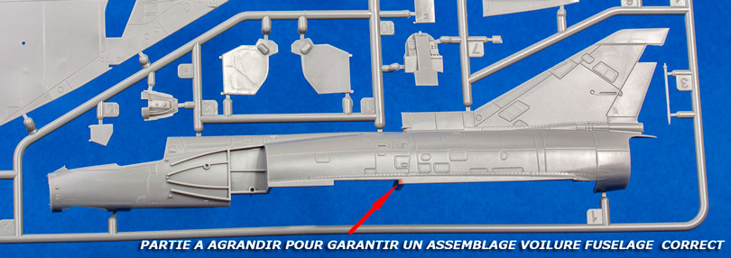 Afin que l'assemblage voilure/fuselage puis entrées d'air s'effectue correctement, il est indispensable d'agrandir l'ergot dans le fuselage (cf photo ci-dessous).