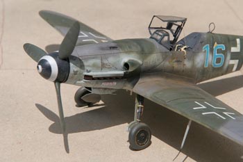 Le gros défaut, plus difficile à corriger, concerne la voie des trains principaux, trop écartés. En effet dans la réalité les trains d'atterrissage des Me109 sont fixés au fuselage et sont donc très rapprochés. Jugeant la modification compliquée (repositionnement des puits de train) j'ai fait l'impasse. J'ai également fait l'impasse sur la position des becs de bord d'attaque généralement sortis au sol sur les 109, pour la même raison de simplicité du projet.