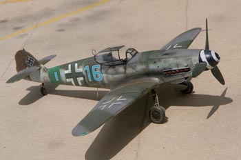Disposant de quelques Me109 fin de série dans mes stocks, soit de marque Revell, soit Fine Molds, mon option expérimentale m'a fait choisir la maquette la plus simple, à savoir la maquette Revell. A vrai dire il s'agit d'un joli petit modèle, avec un joli traitement des surfaces, très économique. Il représente en réalité un Me109G-10. La maquette souffre de quelques défauts que nous avons décidé de corriger ou au contraire de ne pas traiter selon leur complexité.
