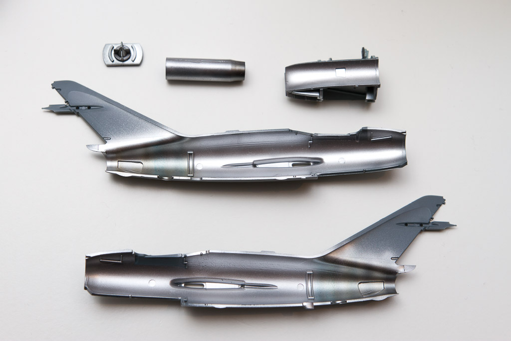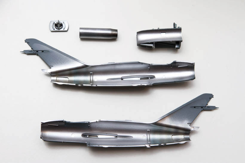 | Application de l'Alclad, première teinte pour faire la base : Polisheed Aluminium. Pulvérisation à 2 bar. |