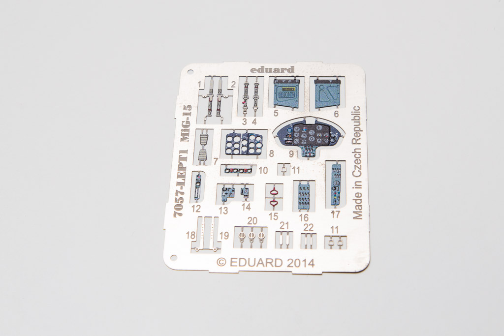 Eduard produit de beaux kits depuis quelques années déjà et je n'avais pas encore eu l'occasion de tester leur production. Pour ce premier essai j'ai chosi le Mig 15 de la serie Profipack, avec un boitage incluant masques et photodécoupe ainsi qu'un choix assez large de décoration le tout pour un prix plutôt interessant. Eduard a bien fait les choses, emballage, beau livret/notice imprimé sur papier glacé, et décos imprimées en couleurs.