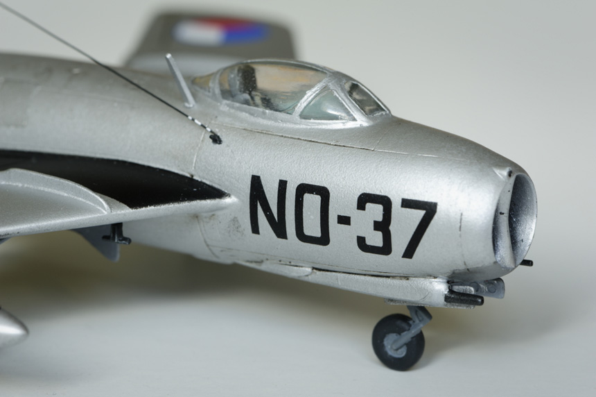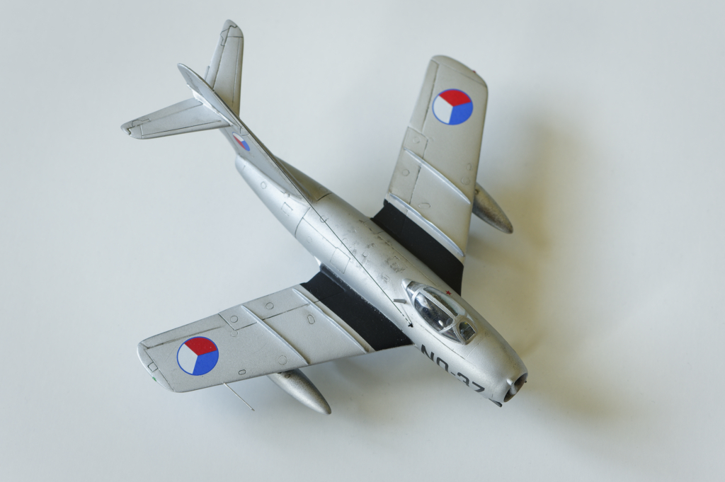 . L'appareil du Lt Jaroslav Sramek porte une étoile victorieuse pour avoir abattu un F-84 Thunderjet de l'USAF appartenant au 36th FBG, le long de la frontière soviétique le 10 mars 1953. (Maquette KP au 1/72° - décalques Eduard)