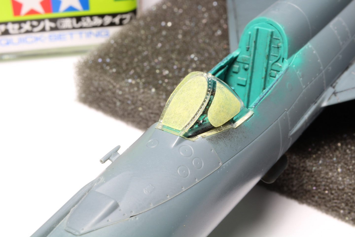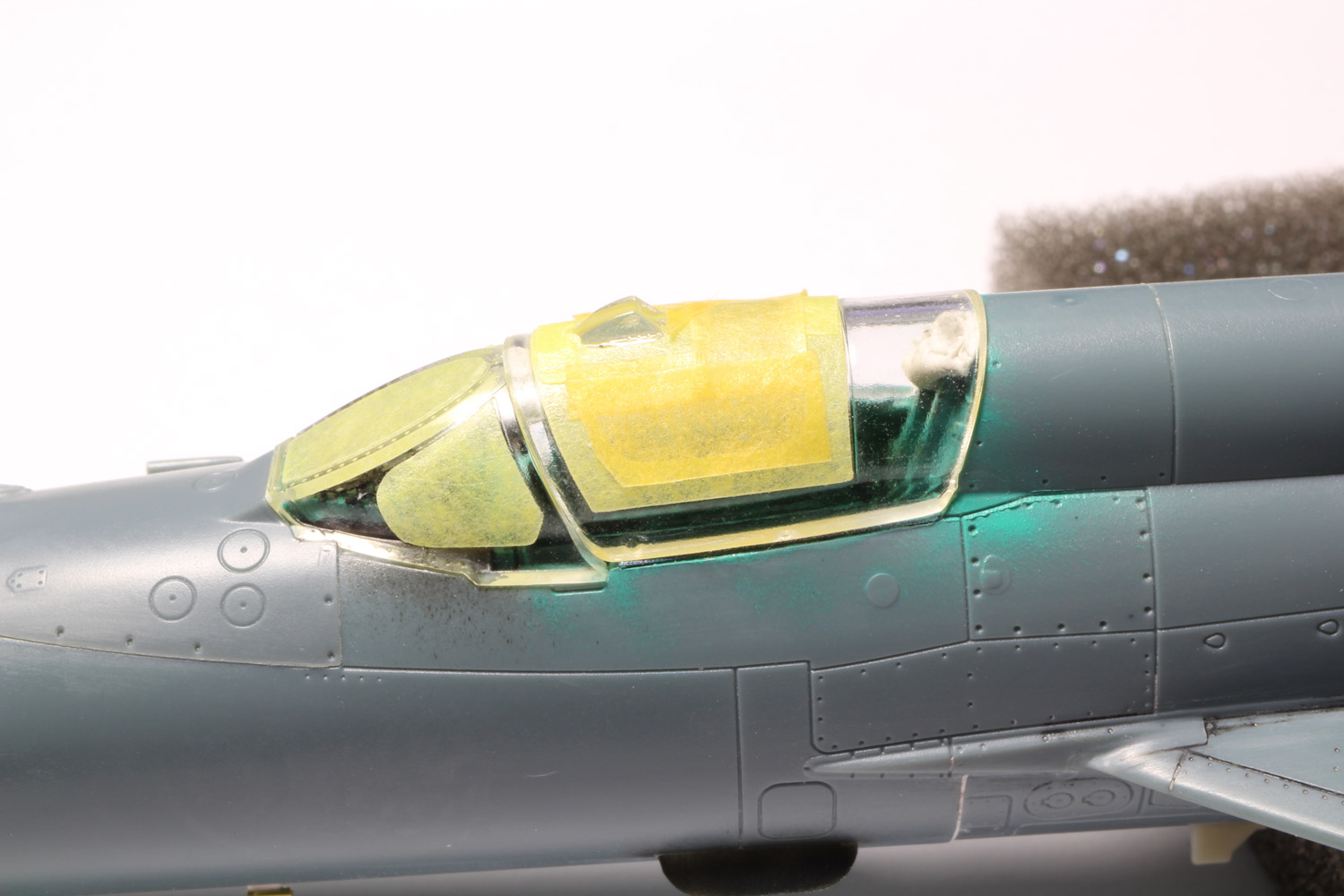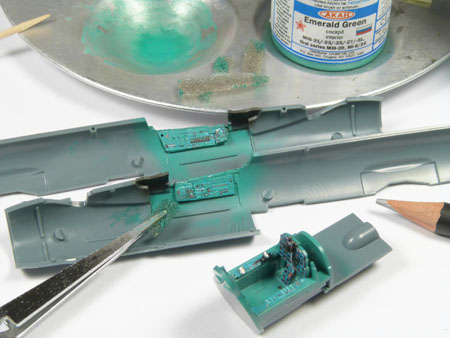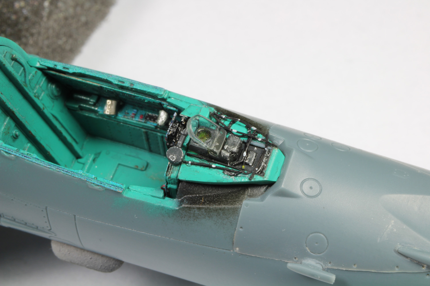 - Sans trop tarder la peinture du cockpit commence avec le vert intérieur russe (MRP-1), ensuite le noir sous la casquette