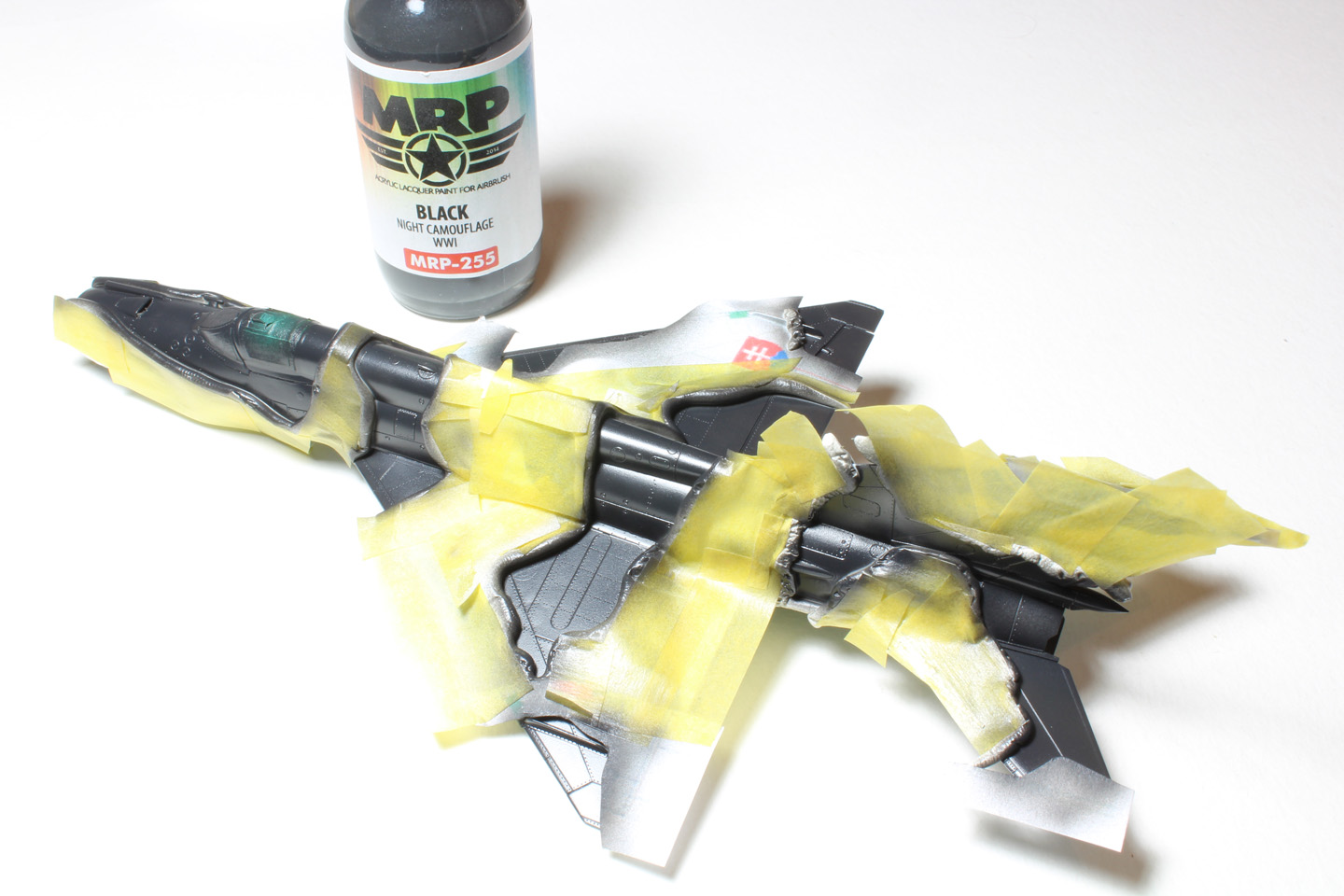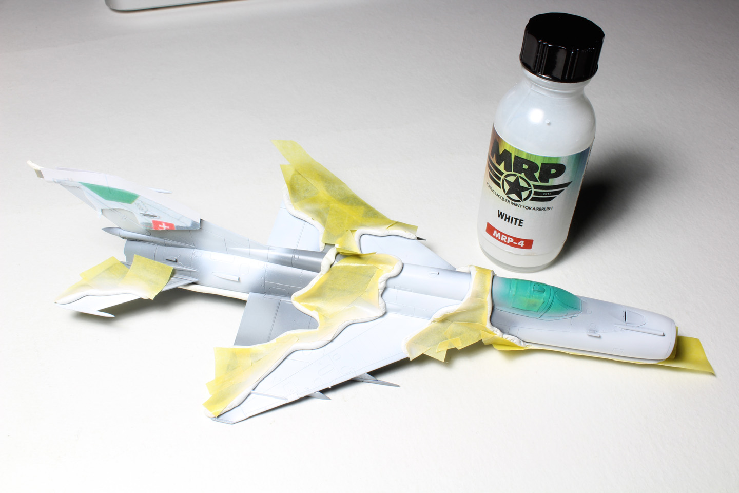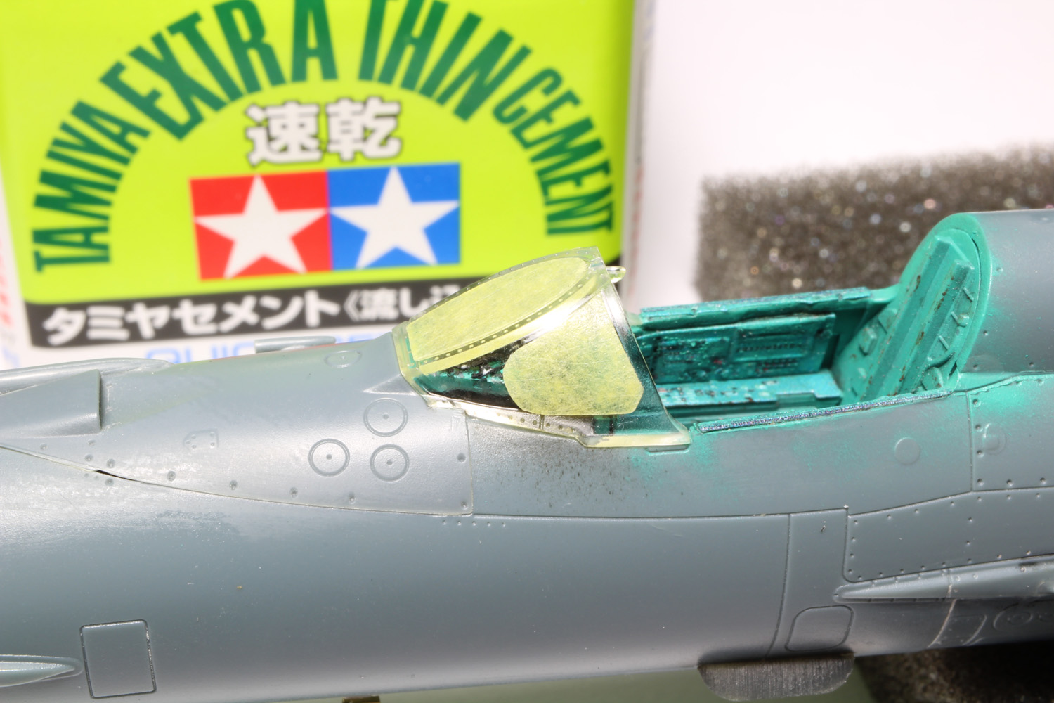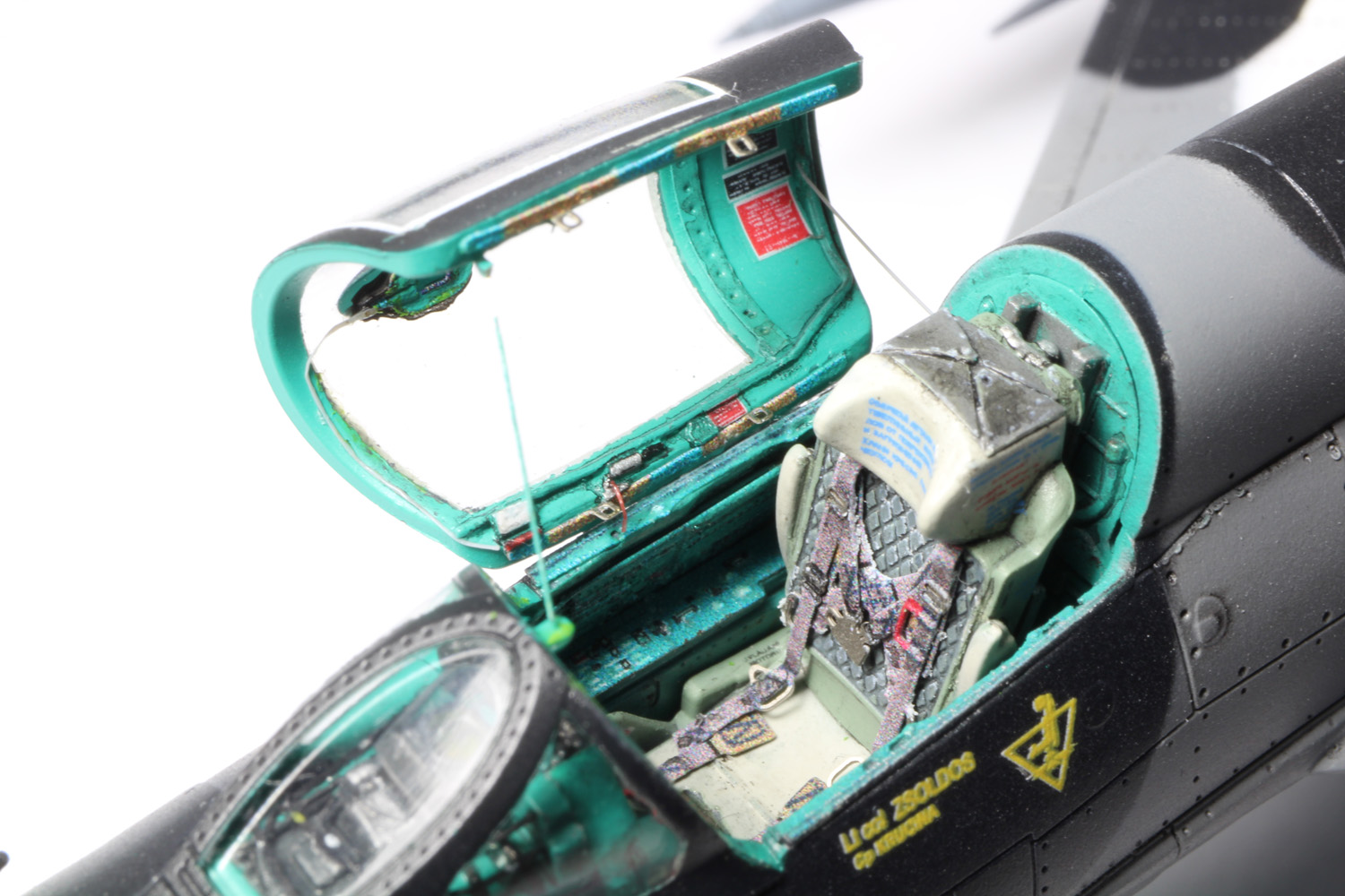- Sans trop tarder la peinture du cockpit commence avec le vert intérieur russe (MRP-1), ensuite le noir sous la casquette