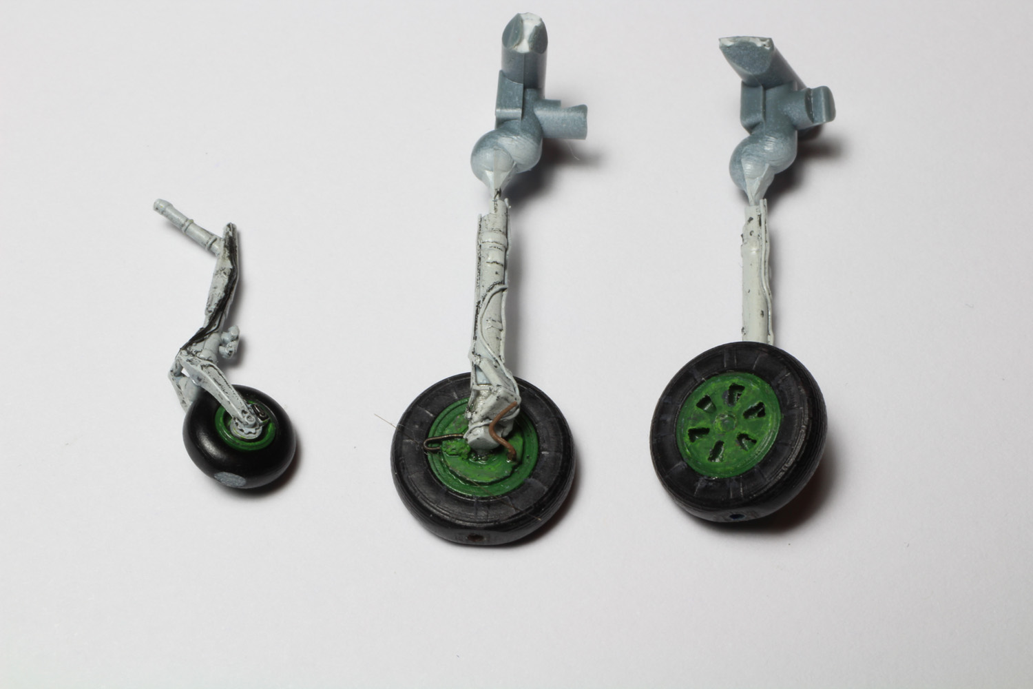 - Les trains ont reçus une couche de gris clair et ensuite les roues en résine RESKIT sont collées. Les câbles sont aussi