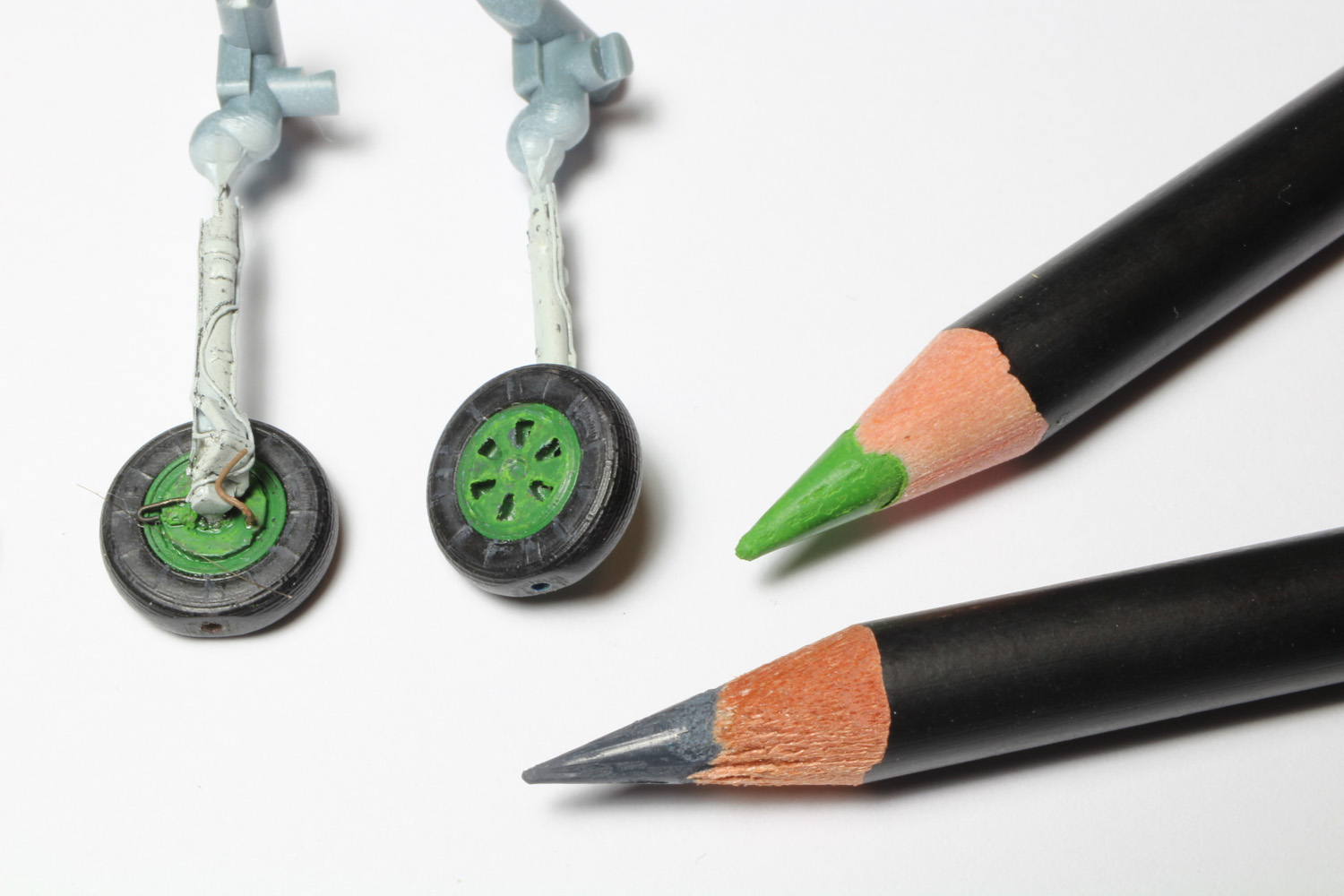 - Avec des crayons je rajoute quelques salissures sur les pneus et sur les jantes.