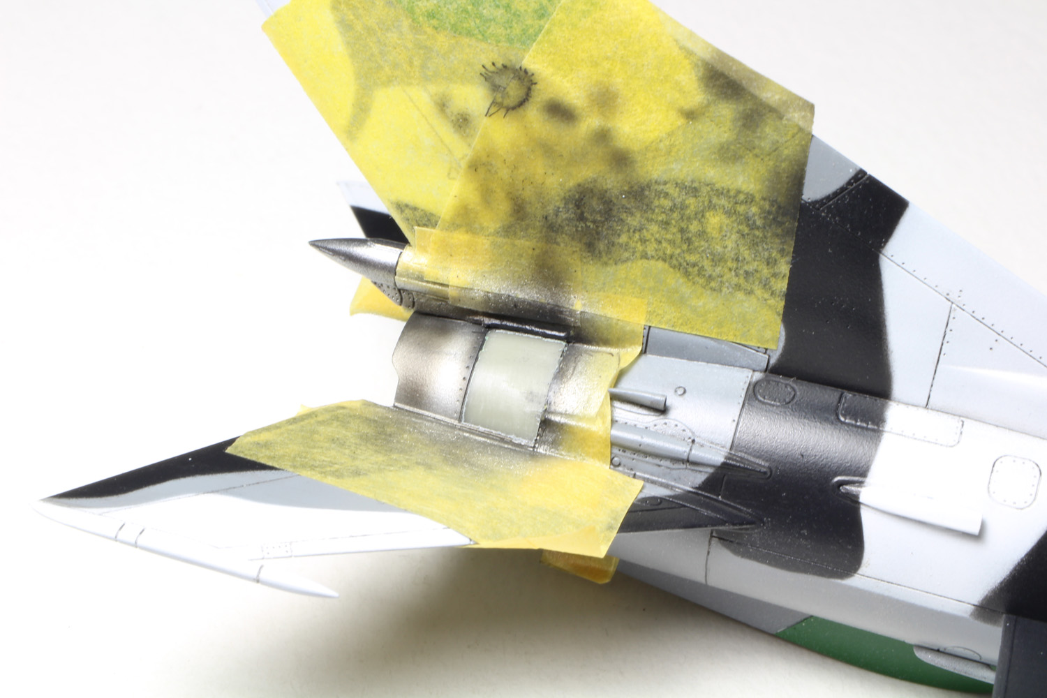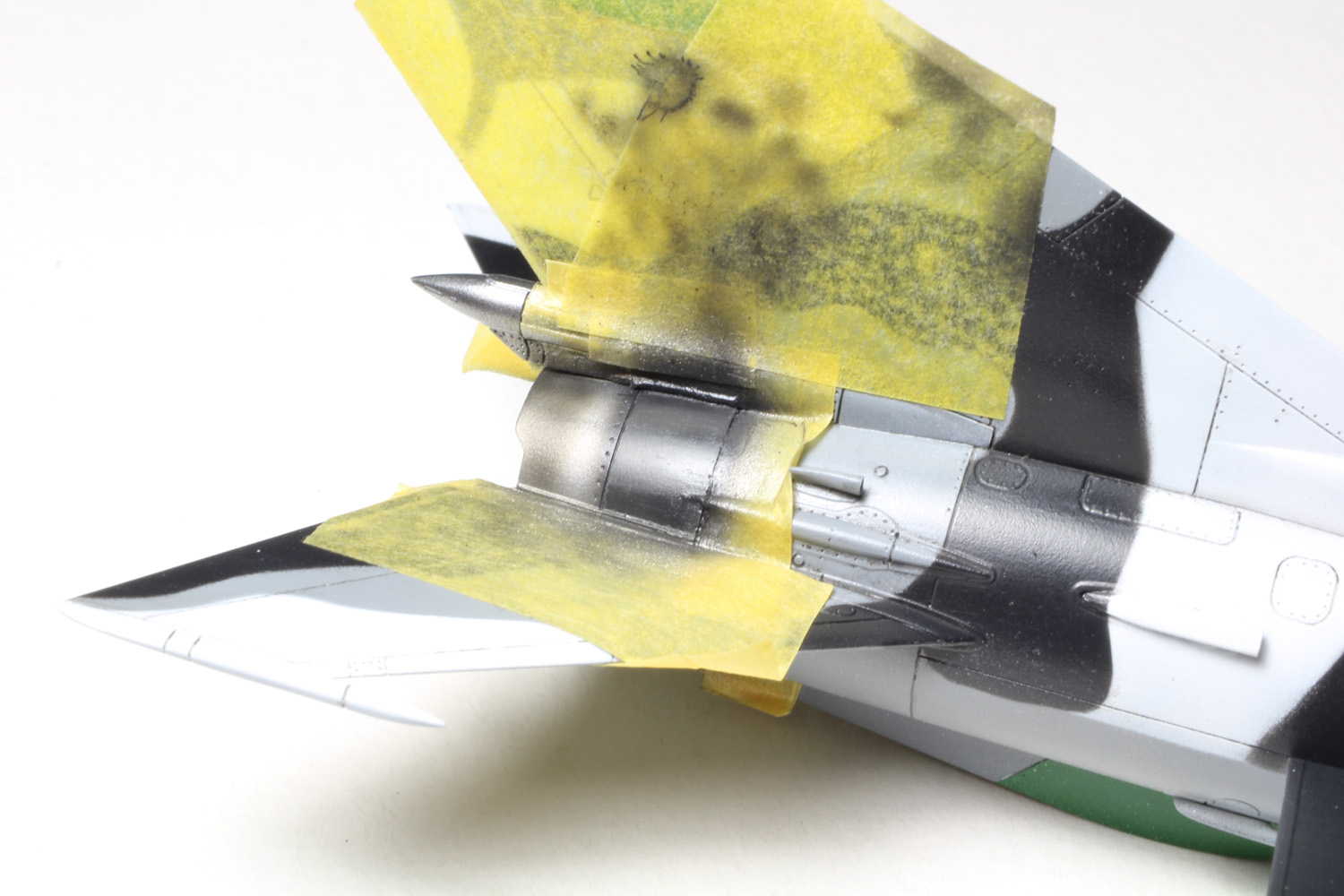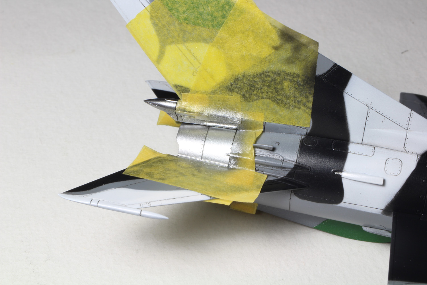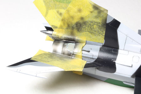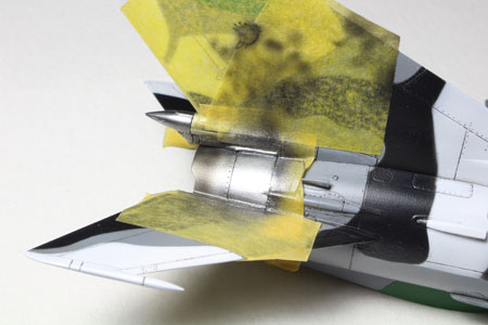 - C'est le tour des parties métalliques. On masque autour avec de la bande adhésive Tamiya.