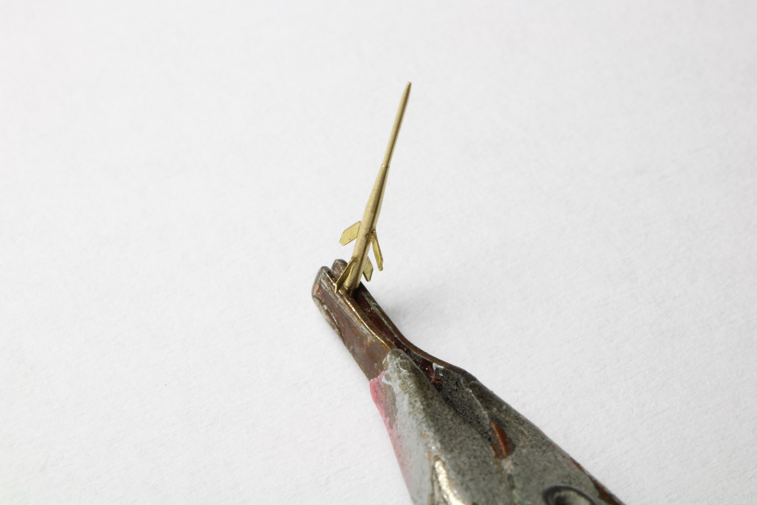 - Le collage du canon est réalisé à la CYANO, alors peu de marge à l'erreur, il faut le placer correctement du premier cout.