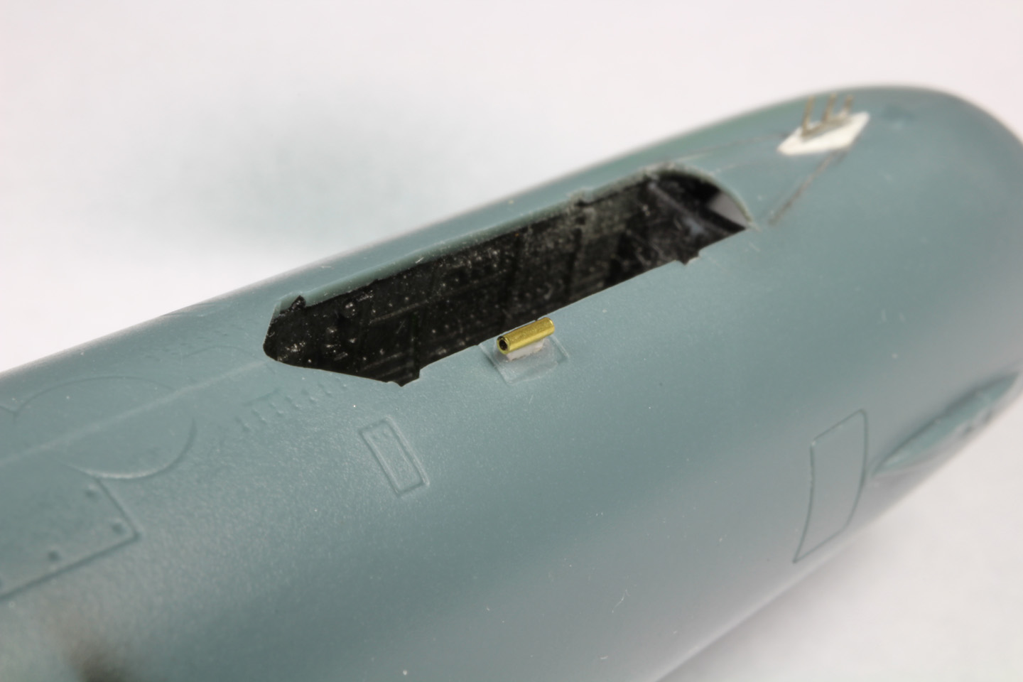 - Le canon du kit a été remplacé par un canon en résine de chez Quickboost. Pour une mise ne place plus facile j'ai creusé