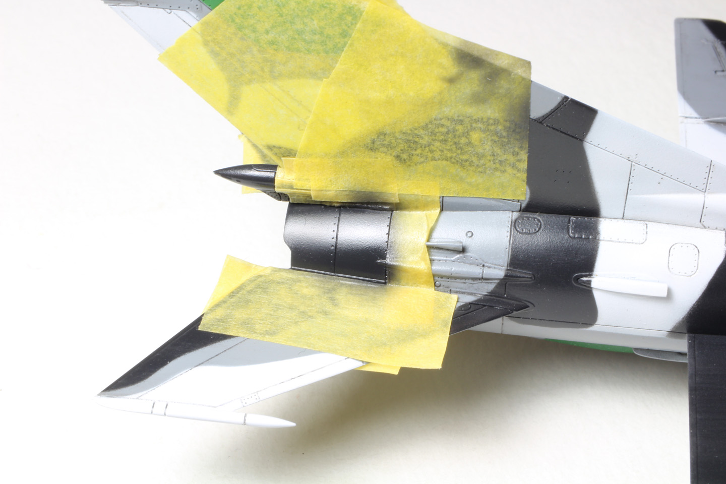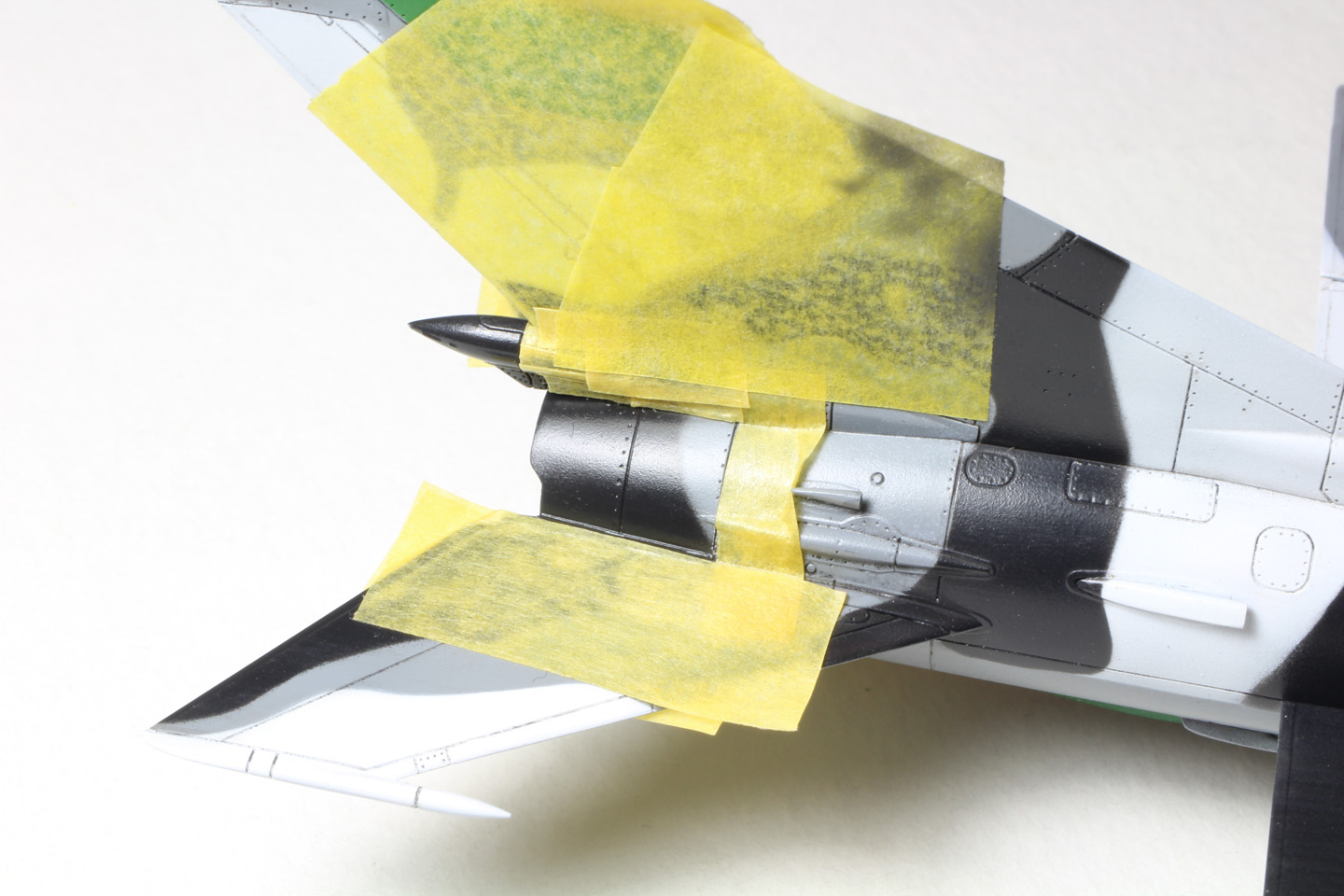 - On masque également les phares sus les ailes et les logements avec du papier toillete.
