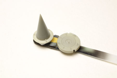 - Les antennes IFF en photo découpe sont collées après avoir créé une sorte de socle avec de la carte plastique.
