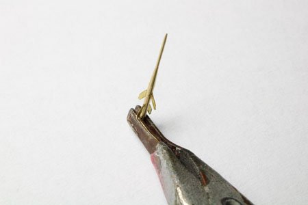 Un cure-dent va servir à enlever la peinture verte, encore fraiche, sur les détails peints avec d'autres couleurs que le vert, ceci nous