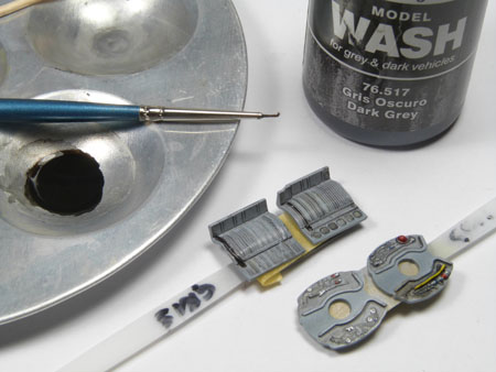 Des jus sombres Vallejo sont appliqués avec un pinceau fin pour faire ressortir les détails.