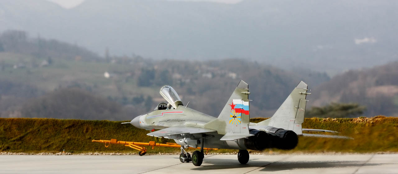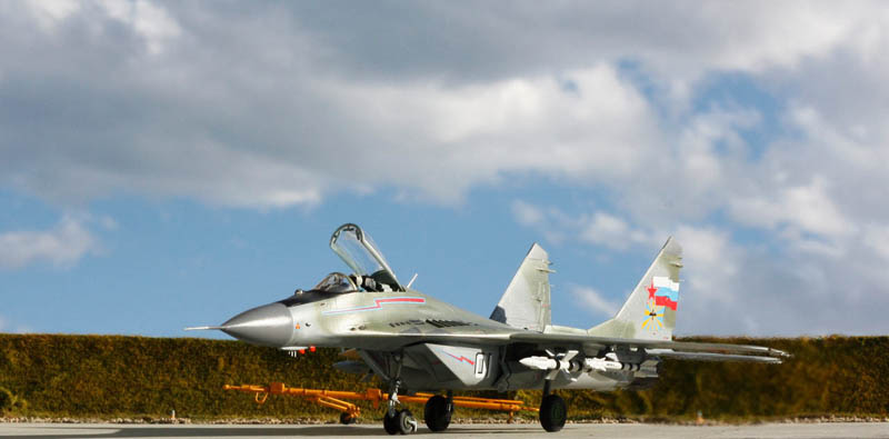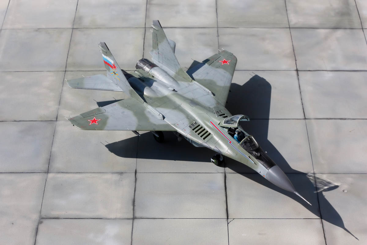 Si la sortie du MIG-29 de Trumpeter en 2015 a généré plus de prudence de la part des maquettistes que d’enthousiasme pour un nouveau moule pourtant tant attendu, j’ai été pour ma part complétement conquis par la qualité du kit. En effet les connaisseurs de l’appareil évoquent d’après plans un problème de forme concernant la largeur de la verrière et la largeur du nez. D’autres pourront être déçus par le fait que les ouïes de l'entrée d’air soient ouvertes. Pour m’éviter le scratch de leur fermeture, vous l’aurez compris, j’ai installé un pilote pour respecter la configuration d’un appareil au roulage. Néanmoins il doit être assez simple de les refermer pour assurer la cohérence de ce MIG au parking ou de créer les caches de protection spécifiques (l’option "entrées d’air principales ouvertes" est possible puisqu'on peut ouvrir ou fermer les rampes d'entrée d'air).