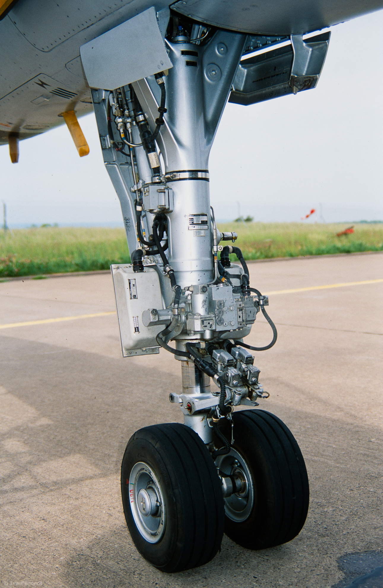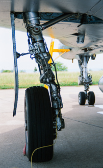 J'ai ajouté sur les trains d’atterrissage les harnais électriques et les canalisations hydrauliques, en utilisant du fil électrique dénudé très fin de 0.25 dixième de mm de diamètre. Ci-dessous, des photos qui pourraient vous aider pour le placement du harnais électrique sur le train avant ainsi que les canalisations hydrauliques sur le train principal.