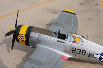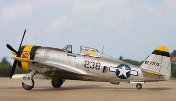 La contribution de la firme au cours de la 2e GM a pris la forme du P-47 Thunderbolt (Juggernaut pour les intimes), le tonneau volant, réputé pour sa solidité. La version la plus produite le P-47D a elle même pris la forme de deux avions : une berline constituée par la version Razorback et un coupé constitué par la version Bubbletop. Les deux versions diffèrent par la découpe du fuselage arrière. Selon la même évolution que celle suivie par le P-51, les enseignements de la guerre ont mis en évidence l'importance de la vision tout azimut et ont amené au développement des verrières goutte d'eau.